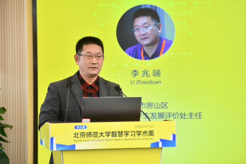 北京市房山区教师进修学校学生发展评价处主任李兆端从“探五育”、“透六层”、“推五维”的角度介绍了“Gt5-6-5好学实验室”建设理念、技术支撑及实践应用经验。浙江省杭州市临平区教育发展研究学院沈伟春教研员介绍了具有教、学、研、评、管等教育服务功能的杭州市临平区智慧研修平台,以及推动教研数字化转型应用场景案例。天津市河西区教育综合服务中心李伟主任分享了河西区构建智慧教育新生态的探索和未来学习的空间设计案例。广东省中山市教育技术中心孙仲廉主任从智慧教育赋能中山教育高质量发展的建设目标出发,介绍了中山市一体化智慧教育生态系统及教学应用成效。河南省固始县教育体育局信息中心曹建国主任介绍了固始县智慧学习环境的建设背景、设计方案及应用成效,并提出了建设未来智慧学习环境的新设想。