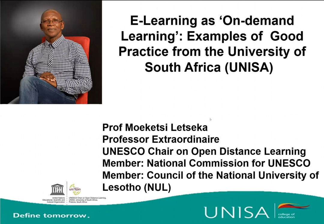 联合国教科文组织开放与远程学习教席主持人、南非大学教授Moeketsi Letseka作特邀报告
