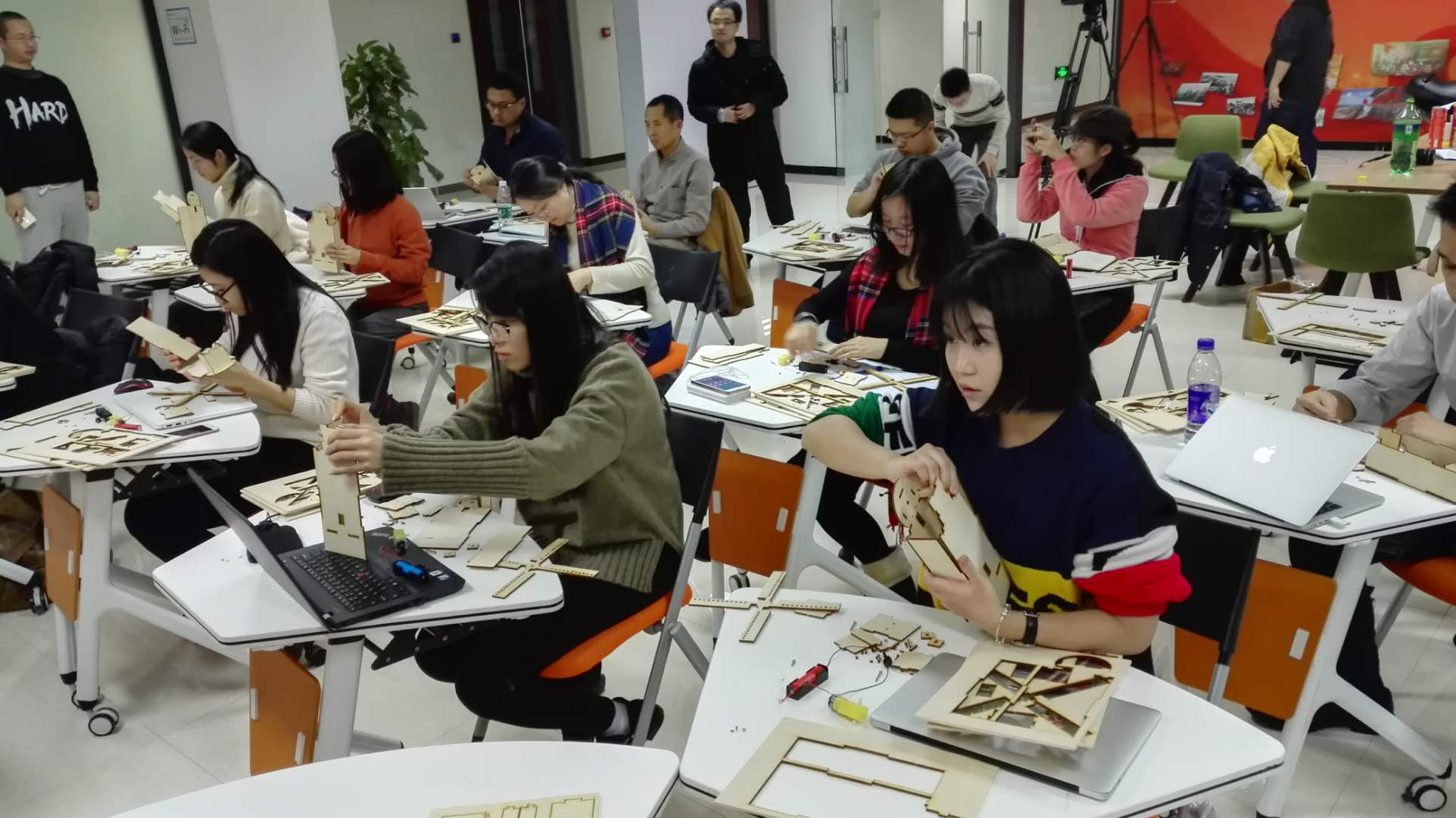 此外,1月5-7日的晚上,学术周特意安排了设计主题研讨,网龙华渔教育、北京景山学校、美科科技(北京)有限公司、乐聚(深圳)机器人技术有限公司、北京萃思教育科技有限公司、北京知感科技有限公司作为业内知名单位参与了研讨。每场由两家公司或学校来引导研讨活动,高校、中小学、培训机构的教师,教育专业硕博研究生、企业的设计师以及创新教育领域的研究者等围绕设计与学习领域的动态、各种实践问题等进行了充分交流。这种近距离的活动受到了参与者的欢迎,并希望研究院能持续搭建这个平台,将设计主题研讨活动形成常态。
