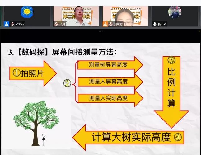 卓越教师代表北京景山学校信息技术优秀教师覃芳老师分享“校园里的大树有多高”案例。覃老师为大家详细介绍了案例的多个环节,包括思考导入、讨论设计、拍照及其注意事项、数据处理及比例换算、误差讨论、拓展任务等,并给教师们提出了有关课时、小组合作与展示等方面的建议。覃老师分享的案例经过了多年的实施与迭代,也成为了数字科学家的经典项目之一。
