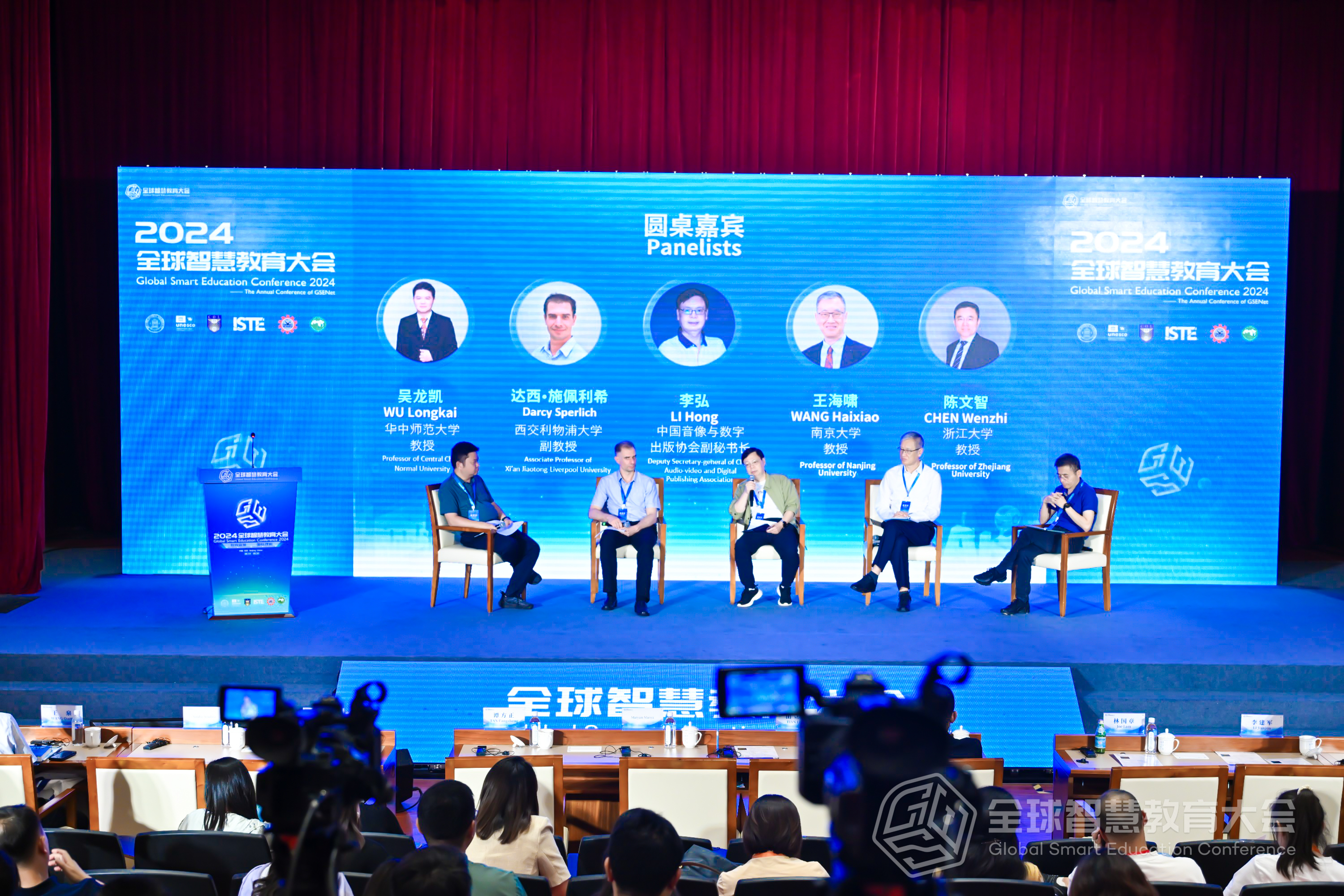 此外,论坛设置了以“数字教材的挑战与机遇”为主题的圆桌讨论,华中师范大学人工智能教育学部教授吴龙凯主持,西交利物浦大学副教授达西·斯佩里奇(Darcy Sperlich)、中国音像与数字出版协会副秘书长李弘、南京大学外语部教授王海啸、浙江大学教授陈文智分别从不同维度分享了对数字教材变革的真知灼见。