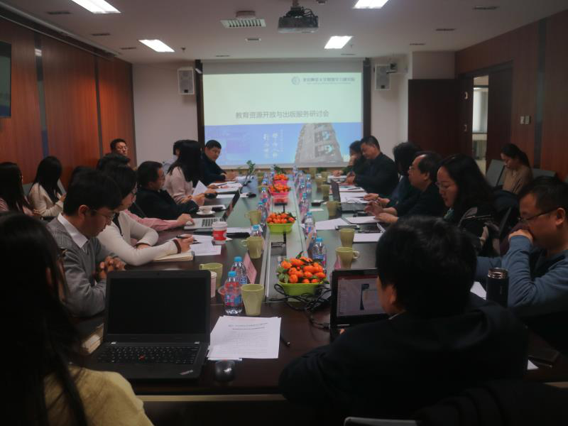 2018年1月16日,研究院主办的“教育资源开放与出版服务研讨会”在第一会议室召开。本次会议邀请来自国家版权保护中心、人民教育出版社、拉萨企业商会、欣博友数据科技有限公司、龙门书局、北教传媒、中国图书进出口总公司、重庆出版传媒集团、中文在线、网龙网络公司、亚马逊等单位的专家和行业代表,就“‘一带一路’沿线国家对教育资源的新需求及其为国内教育出版行业带来的新机遇”、“教育资源开放共享与知识付费的共存机制”等议题进行了探讨。
