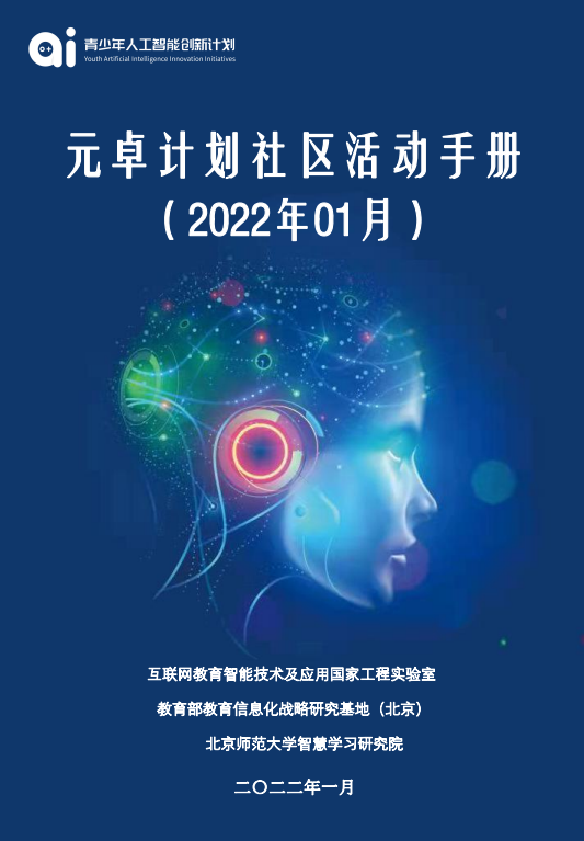 一月的“元卓计划”社区活动获得了分享嘉宾、参与者的大力支持,三期活动吸引了500余位老师参与,并进行了研讨和交流,取得了积极的效果。为了更好的总结经验、分享成果,北京师范大学元卓计划项目组制作了《元卓计划社区活动手册(2022年01月)》,系统的介绍了“元卓计划”、青少年人工智能项目优秀成果征集活动和三期社区活动的情况,希望能对老师们有所帮助,方便老师们查阅相关信息。