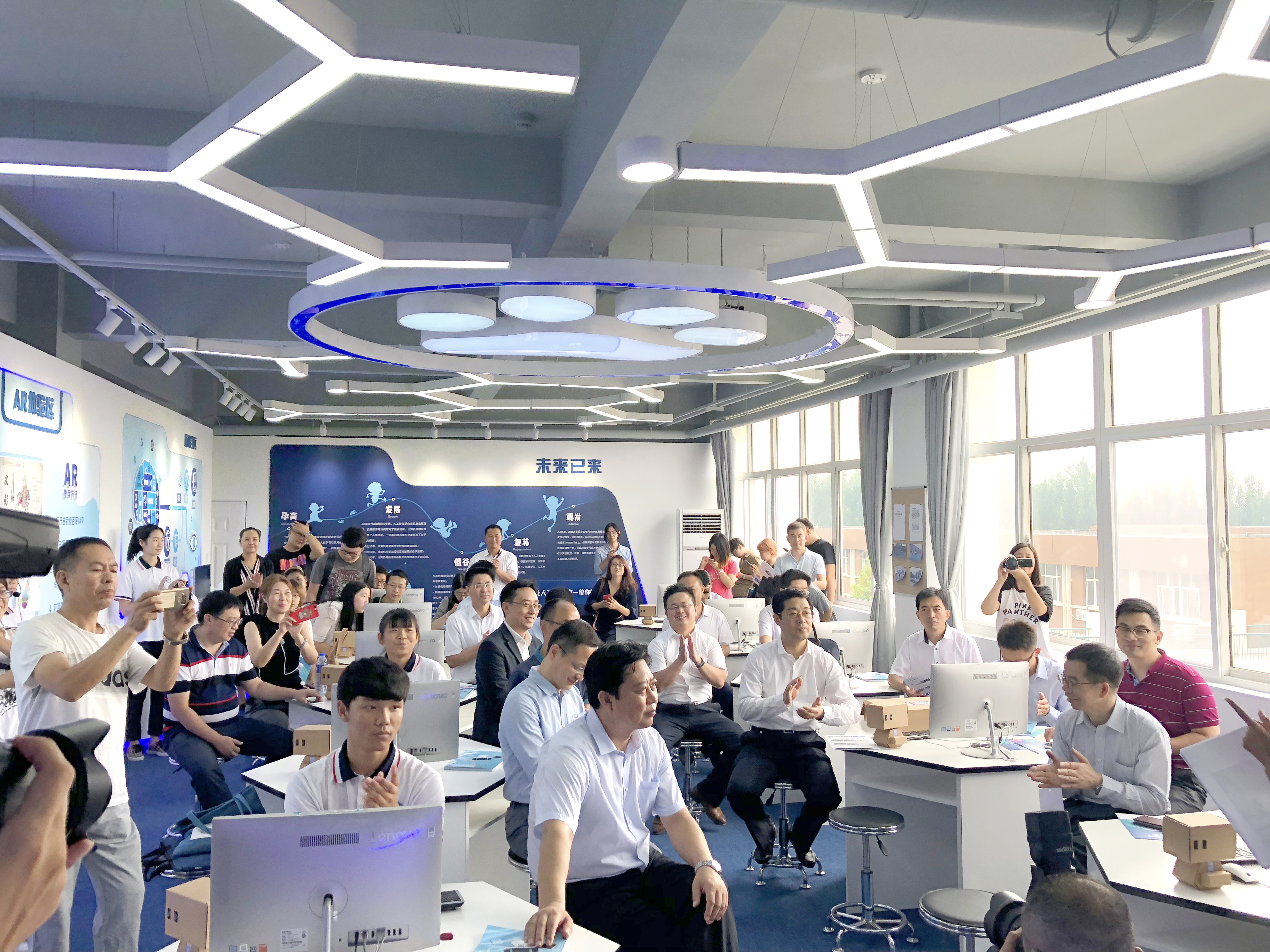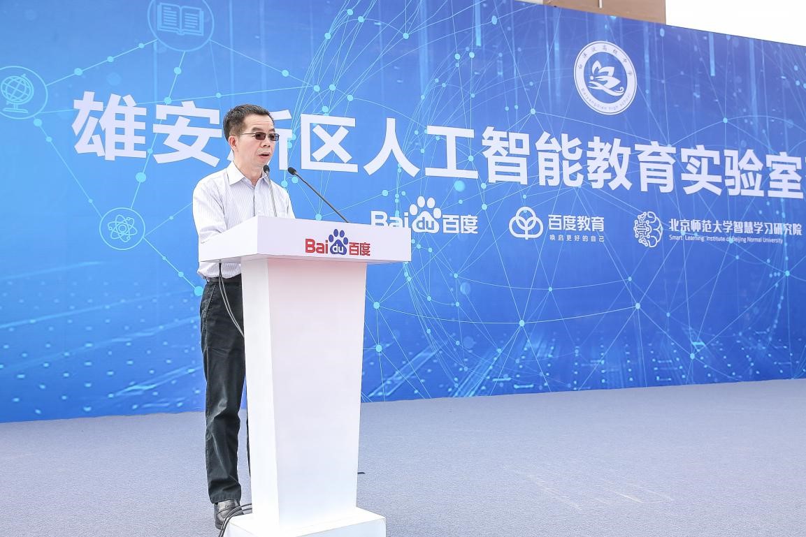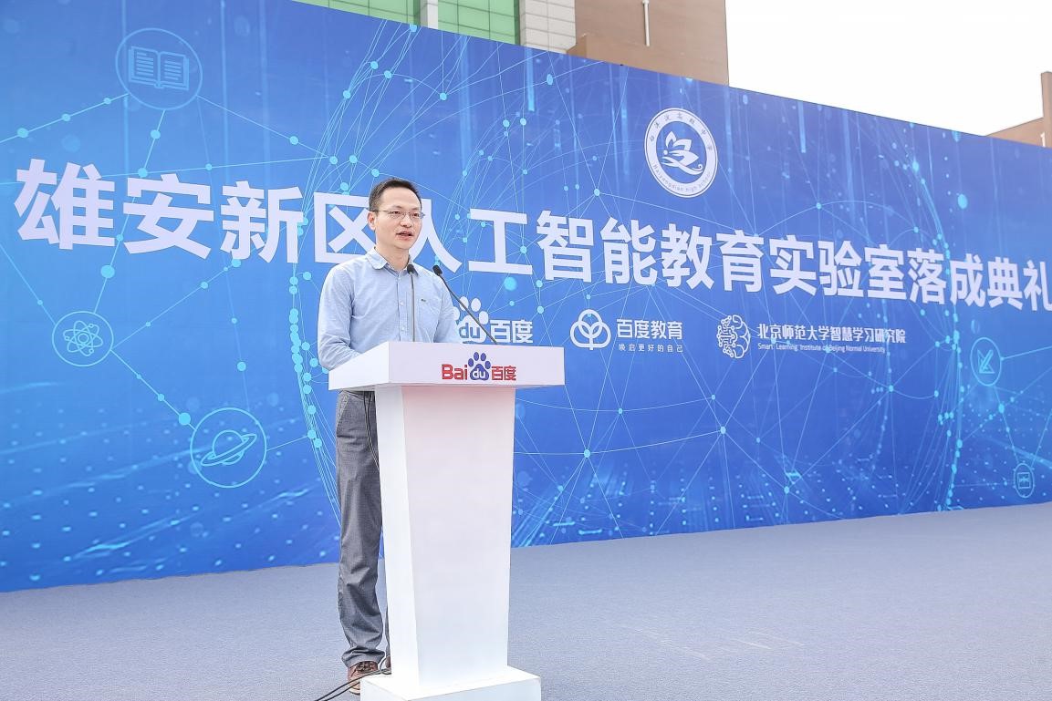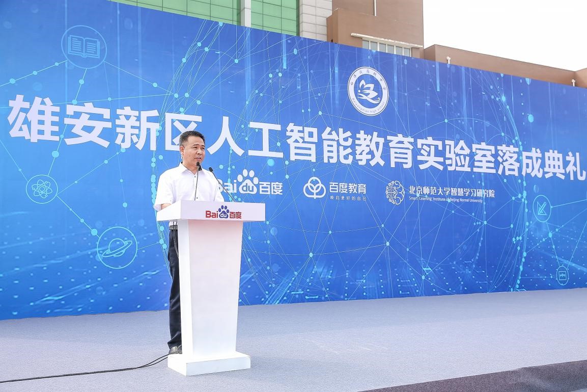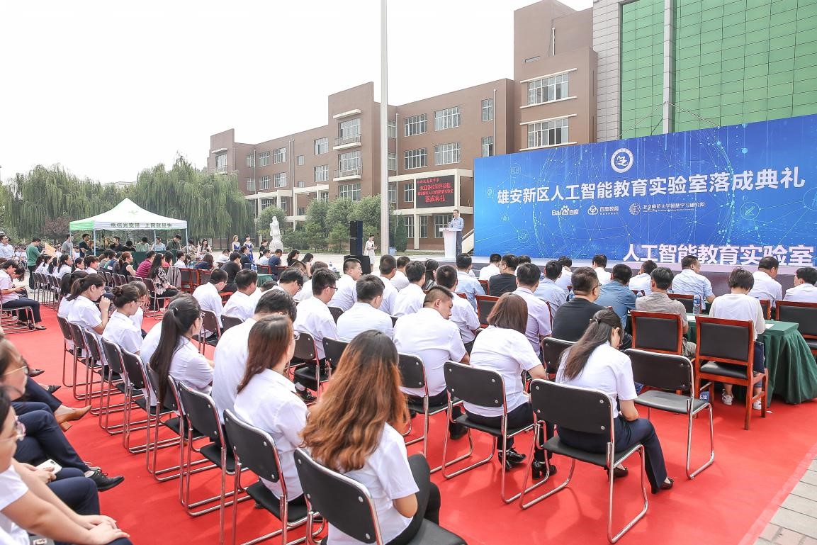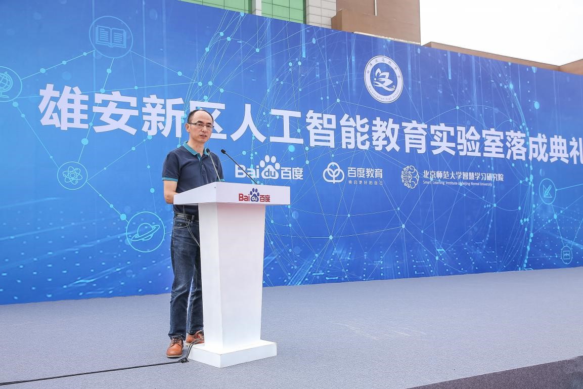 9月14日上午,由北京师范大学智慧学习研究院和百度教育联合建立的"雄安新区人工智能教育实验室"落成典礼在雄县白洋淀高级中学举行。雄安新区党工委委员、管委会副主任傅首清,雄县县长 杨跃峰,北京师范大学智慧学习研究院院长黄荣怀,百度公司副总裁赵承等领导、嘉宾,以及白洋淀高级中学的师生参加了活动。