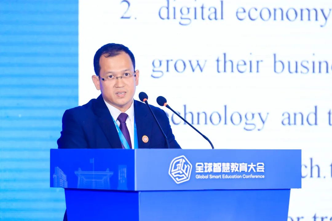 东南亚教育部长组织技术教育发展中心(SEAMEO TED)主任Songheang Ai博士带来了题为《数字化转型与技能发展》的主旨报告。他指出,未来岗位对AI以及相关信息技术人员的需求会持续增多。SEAMEO TED成立了基础教育、技能发展、企业推广相关的项目和基金,在促进数字化转型的同时,帮助求职者更好地就业,也为企业提供更有力的帮扶支持。