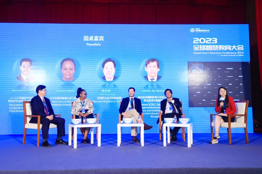 在圆桌讨论中,与会专家学者斯洛文尼亚数字化转型部前部长、Kumo.AI公司国际市场副总裁 Mark Boris Andrijanic,乌干达麦克雷雷大学工程学院院长Dorothy Okello,深圳职业技术学院教授杨文明,苏丹依德理斯教育大学技术与职业教育学院教授Ramlee Bin Mustapha围绕“解锁数字机遇,共同崛起:以包容性的数字技能为青年赋能”这一主题,从世界不同国家地区的实践方法,多方位探讨了教育数字化转型背景下青年职业教育培训所面临的挑战以及思考,为共同促进职业教育的数字化,培养适应数字化时代挑战的高素质技术技能人才提供了新的方针和路径。