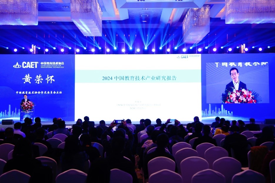 2024年12月21日,中国教育技术协会学术委员会主任、北京师范大学智慧学习研究院联席院长黄荣怀在第七届教育技术发展与应用大会暨成果展览会开幕式发布年度研究成果《2024中国教育技术产业研究报告》(以下简称《报告》)。
