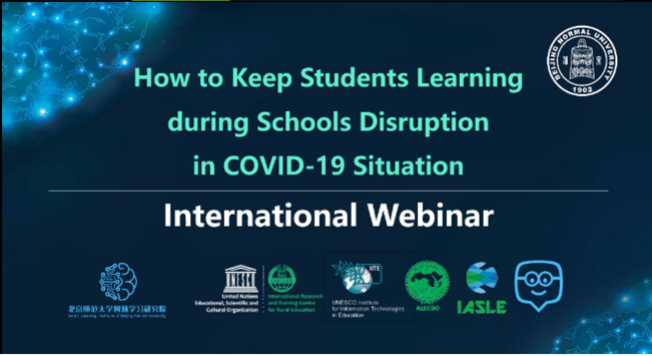 北京时间2020年3月13日,“How to Keep Students Learning during Schools Disruption in COVID-19 Situation(教育战疫,停课不停学)”国际研讨会通过在线方式召开。本次研讨会由北京师范大学智慧学习研究院(SLIBNU)和联合国教科文组织国际农村教育研究与培训中心(INRULED)共同发起,联合国教科文组织教育信息技术研究所(UNESCO IITE)、阿拉伯教科文组织(ALECSO)、国际智慧学习环境协会(IASLE)联合举办,网龙网络公司旗下全球在线学习社区Edmodo提供支持。会议邀请了疫情比较严重的十几个国家和地区的学者、企业及国际组织的代表共同在线研讨了如何有效推进“停课不停学”,与会嘉宾介绍了各地的现状、问题及对策。