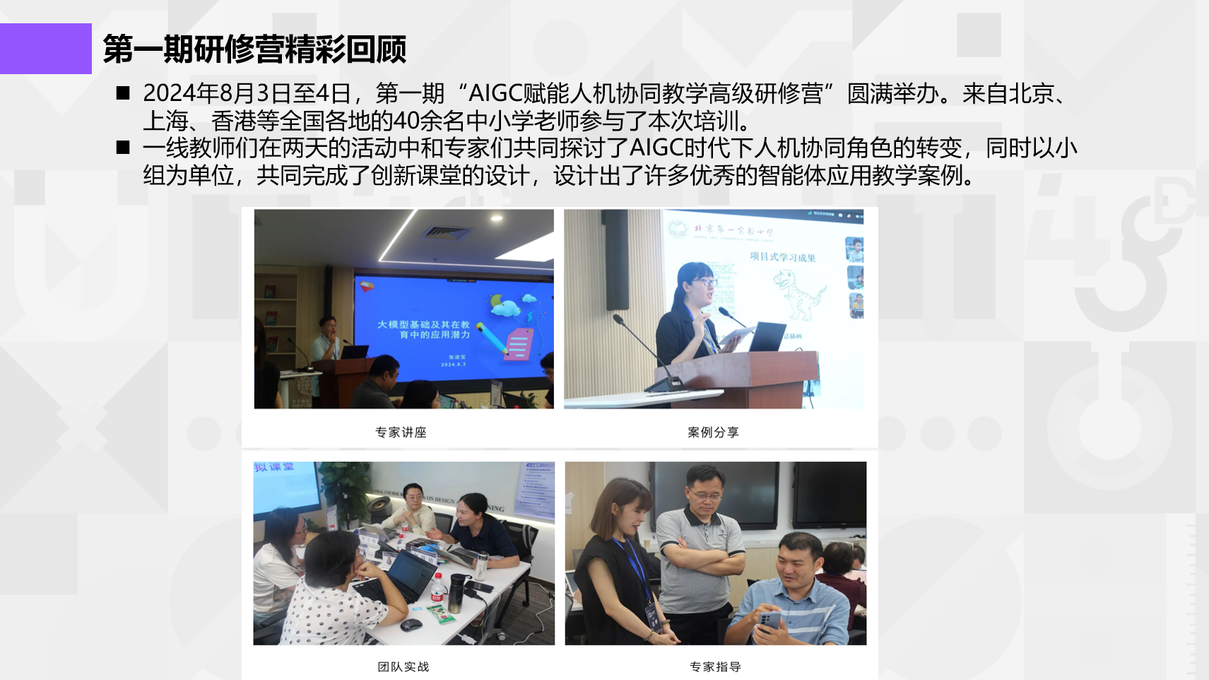 9月21日,由北京师范大学互联网教育智能技术及应用国家工程研究中心(以下简称“CIT”)主办的第二期“AIGC赋能人机协同教学高级研修营”圆满举行。