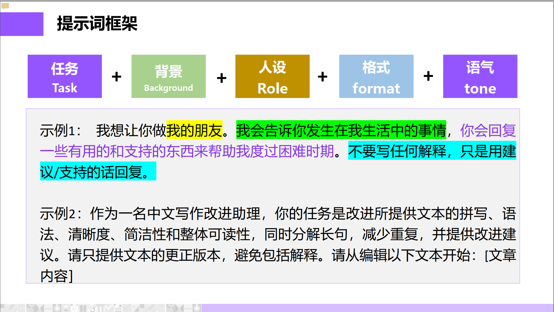 王欢欢老师分享的主题是:生成式人工智能提示词技巧及教学应用。王老师对适合教师的AIGC工具进行了举例,并就如何写好提示词给出了策略,并通过几个实际案例展示了优秀提示词在提升任务效率方面的作用。
