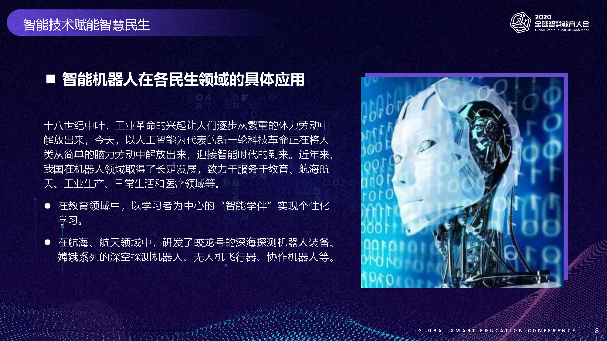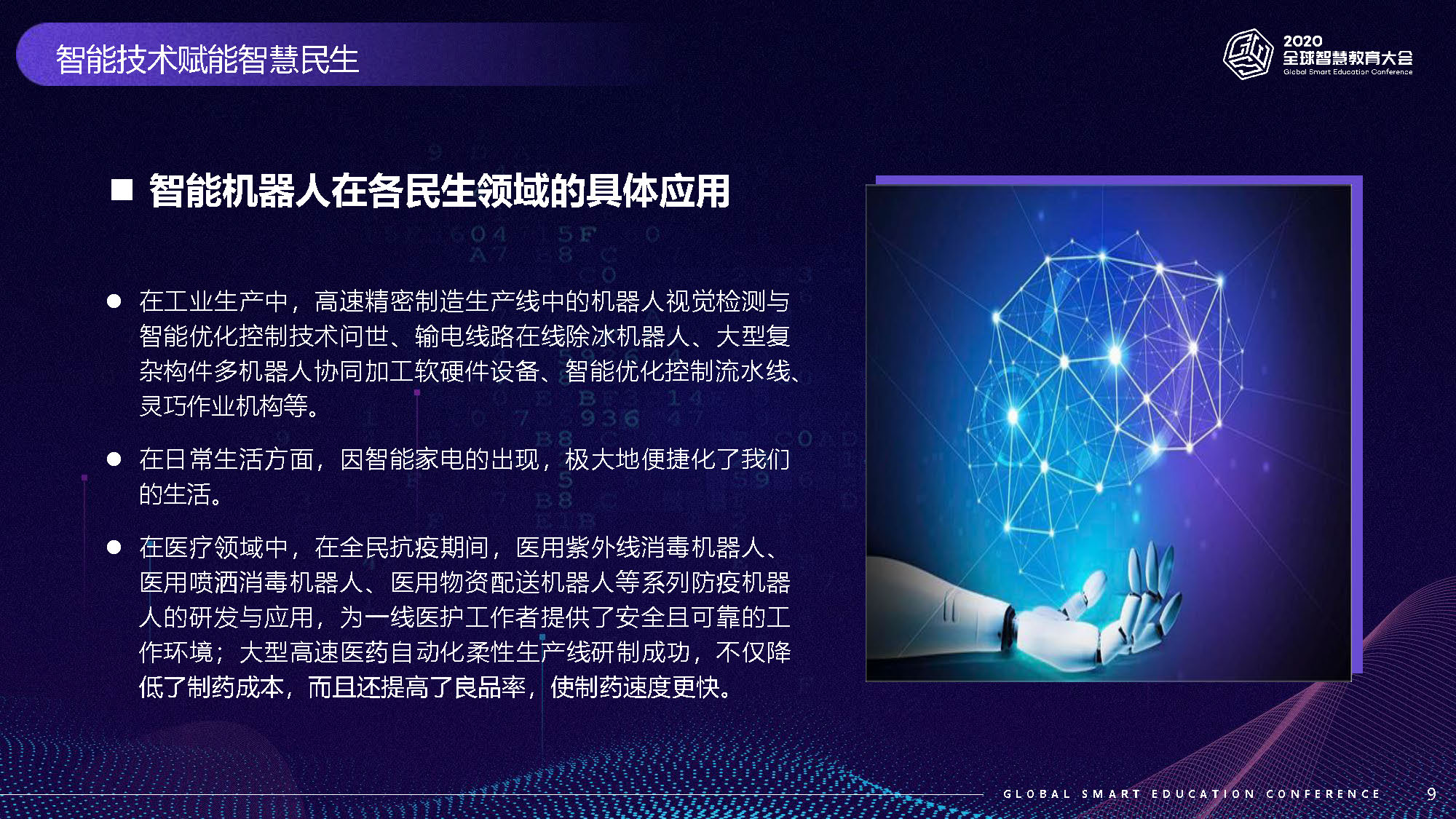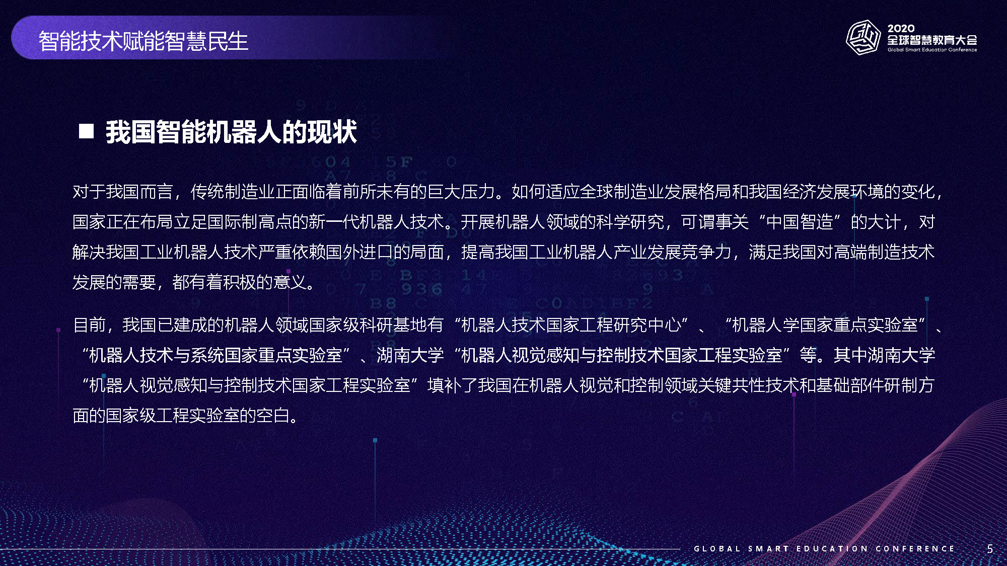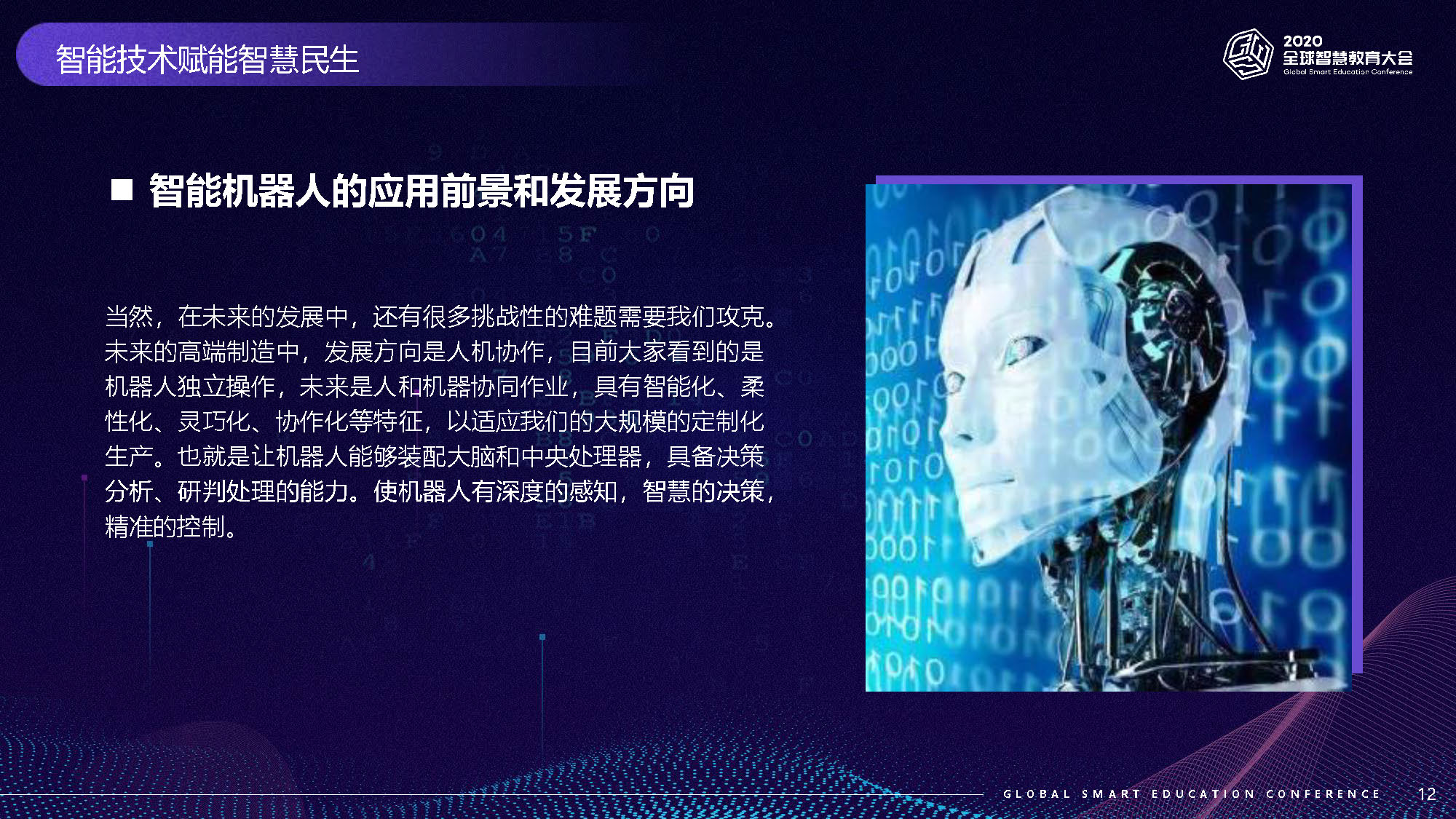 随着互联网、5G、虚拟现实、人工智能等技术的迅猛发展和组合创新,人类教育迈进“智能时代”的重要当口。由北京师范大学主办的2020全球智慧教育大会20日至22日举行,湖南大学教授、中国工程院院士王耀南分享了智能机器人在教育、医疗、养老等领域的应用情况和未来趋势,并就“人工智能赋能教育”接受了人民网记者的远程采访。