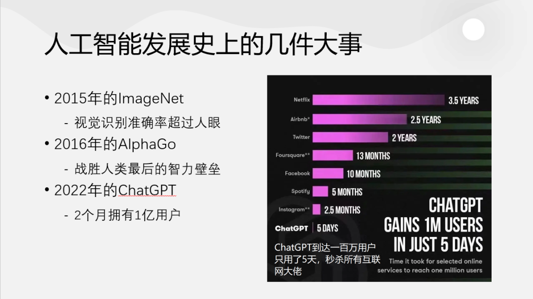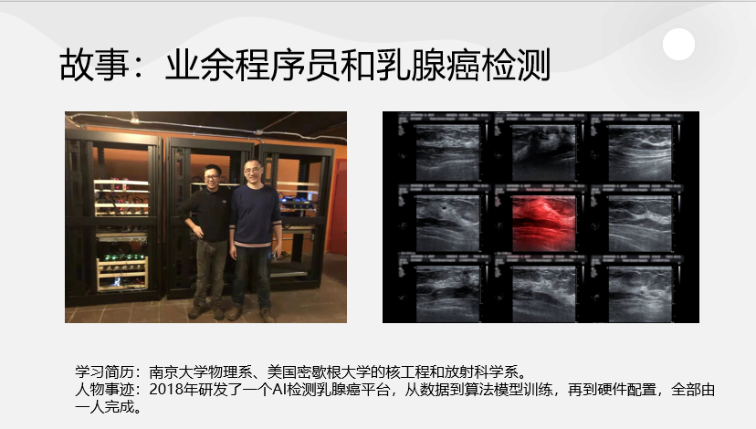 谢老师认为,“AI”早已不是你所了解的“AI”,ChatGPT也许仅仅是一次“预警”;从新一代人工智能角度看ChatGPT,看的是如何认识AI、直面AI、掌控AI。新一代人工智能的趋势将不断增长,AI越来越走向产业化,开发门槛将会越来越低,其应用场景正在不断拓展。谢老师讲述了业余程序员姜浩和乳腺癌检测的故事,2018年这位程序员研发了一个AI检测乳腺癌平台,从数据到算法模型训练,再到硬件配置,全部由他一人完成。谢老师认为,任何新技术的发展都需要时间积累,AI发展需要场景创新。