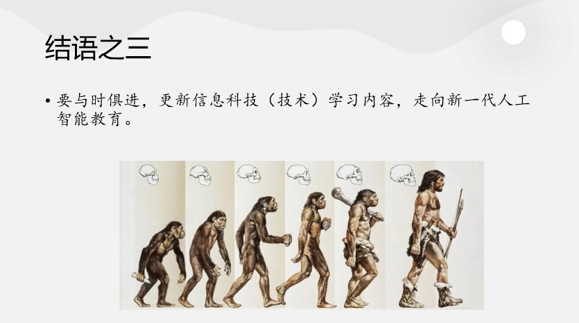 要与时俱进,更新信息科技(技术)学习内容,走向新一代人工智能教育。