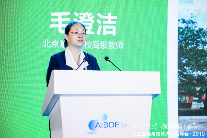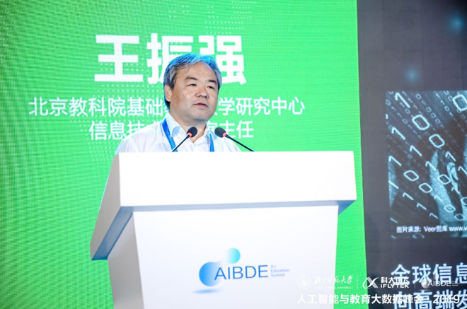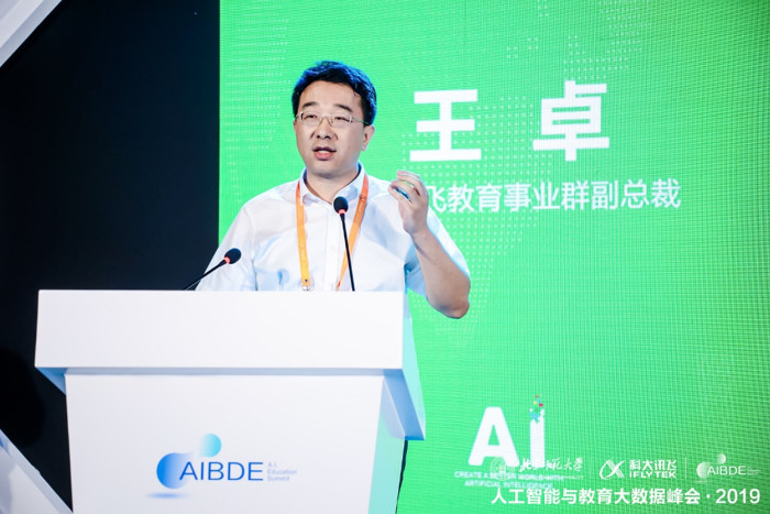 企业代表科大讯飞教育事业群副总裁王卓做了题为《人工智能技术在教育教学领域的实践影响》的报告,他提出了人工智能可分为计算智能、感知智能、认知智能等三个层次,通过人工智能与教育大数据的结合,将构建智慧教育体系,其中数据是基础、平台是支撑、分析是核心、服务是根本、效益是必然。而AI创新教育则是为学生提供唾手可得的人工智能学习工具,实现对AI的创新实践应用。