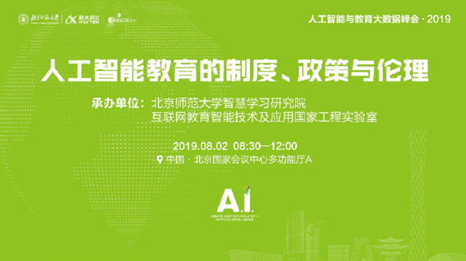 2019年8月1日-2日,由北京师范大学与科大讯飞联合举办的人工智能与教育大数据峰会在北京国家会议中心召开。其中由北京师范大学智慧学习研究院和互联网教育智能技术及应用国家工程实验室承办的分论坛四“人工智能教育的制度、政策与伦理”于8月2日上午在国家会议中心多功能厅A成功举办。