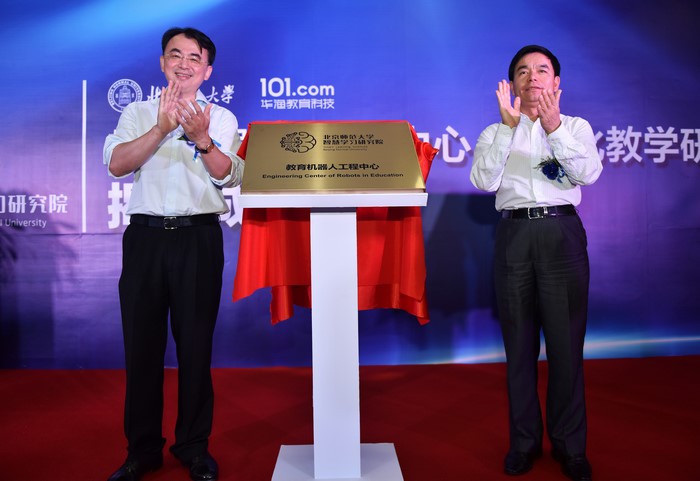 当天,北京师范大学智慧学习研究院新设两个研发机构----“教育机器人工程中心”及“信息化教学研究中心”在网龙网络公司位于福州长乐海滨的长乐园区挂牌。业界认为,此举显示大陆“K12教育”(小学至高中的12年教育)市场呈现的巨大吸引力,正吸引“互联网+教育”的产学研融合加快提速。