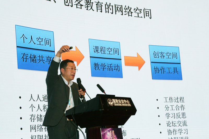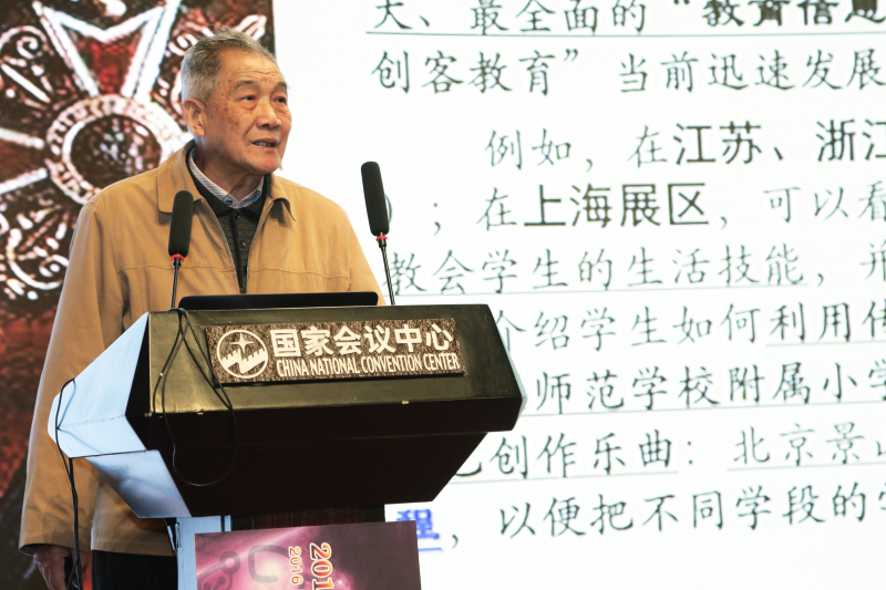 何克抗教授以《实现“双创”目标的根本途径——创立中国特色创客教育体系》为题,探讨了中西方“创客教育”的异同、中国 “创客教育”的实施现状,及倡导与推行中国特色的“创客教育”的途径。