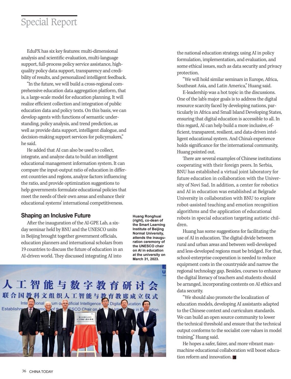 Since 2022, a number of international exchanges have been carried out on AI in education. That year, the third International Conference on AI and Education was held to strengthen global partnerships to use AI to empower teachers and transform teaching and learning.