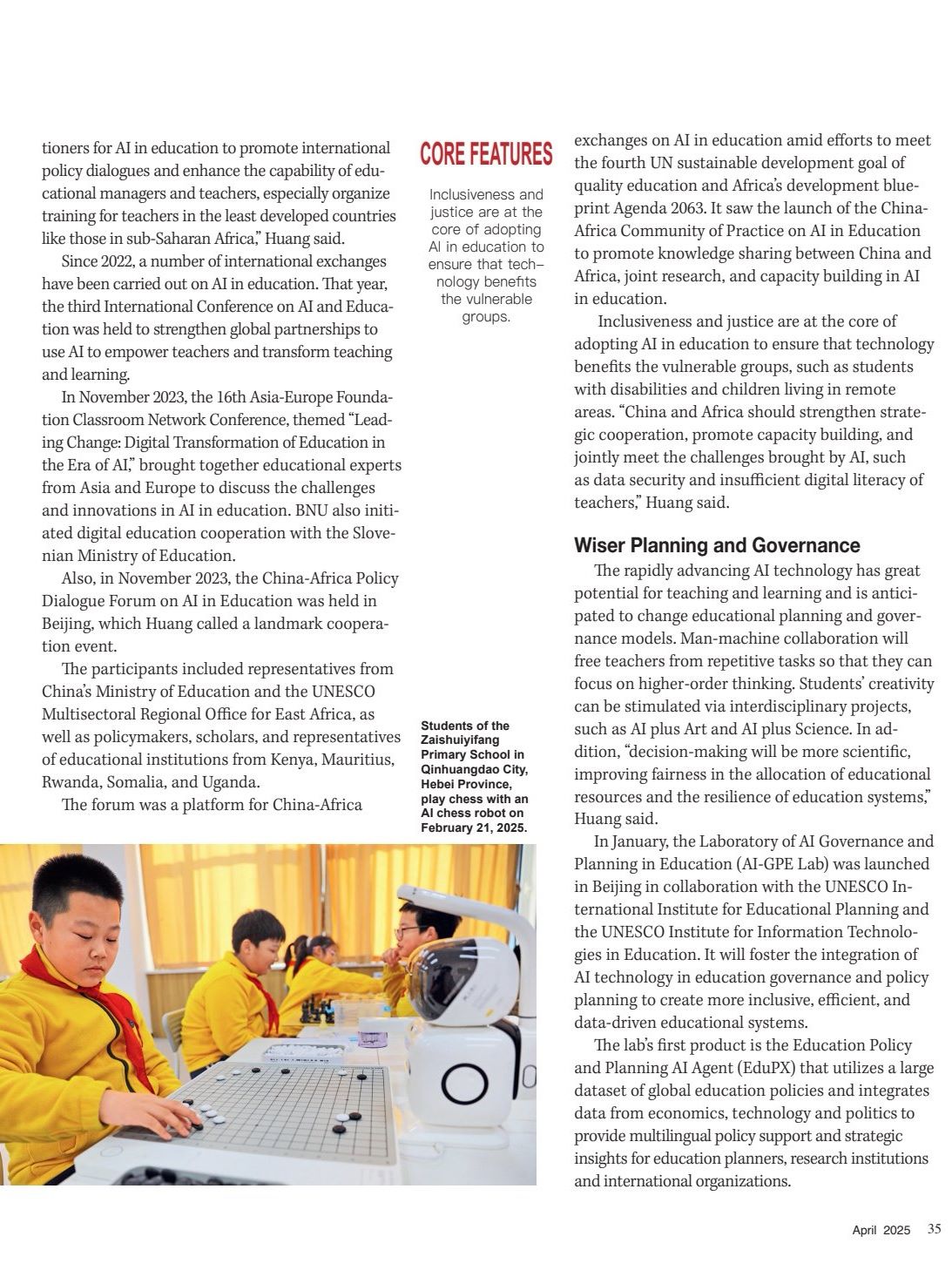 Also, in November 2023, the China-Africa Policy Dialogue Forum on AI in Education was held in Beijing, which Huang called a landmark cooperation event.