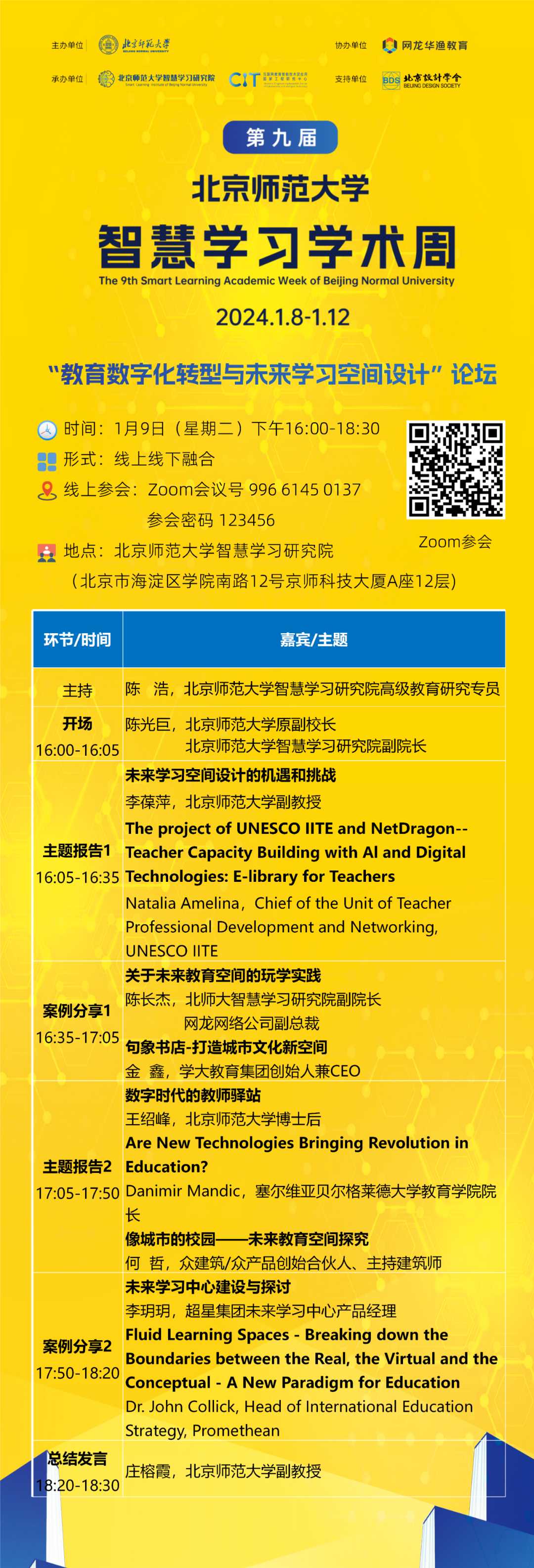 1月9日,一起探索“未来学习空间设计”——北京师范大学第九届智慧学习学术周