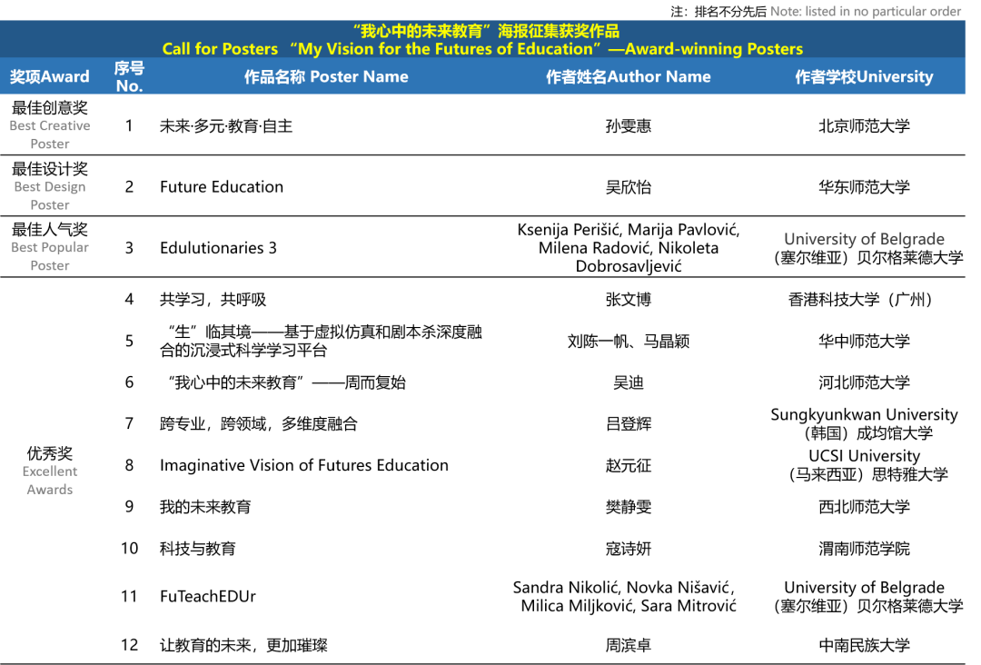 大学生赛道“我心中的未来教育”海报征集获奖名单:
