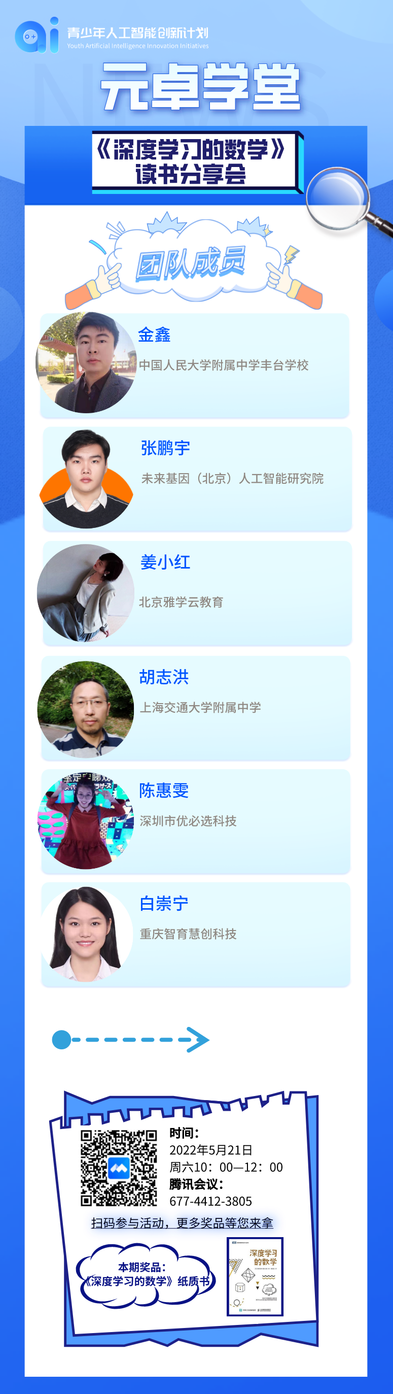 元卓学堂在本月举办“五月读书月”活动,通过读书活动,协助社区老师互相学习、互相交流。首期由种花家团队带来的《终身幼儿园》读书分享会已于5月14日圆满结束,本周六金鑫老师、张鹏宇老师、姜小红老师、胡志洪老师、陈惠雯老师和白崇宁老师将带来《深度学习的数学》读书分享活动。