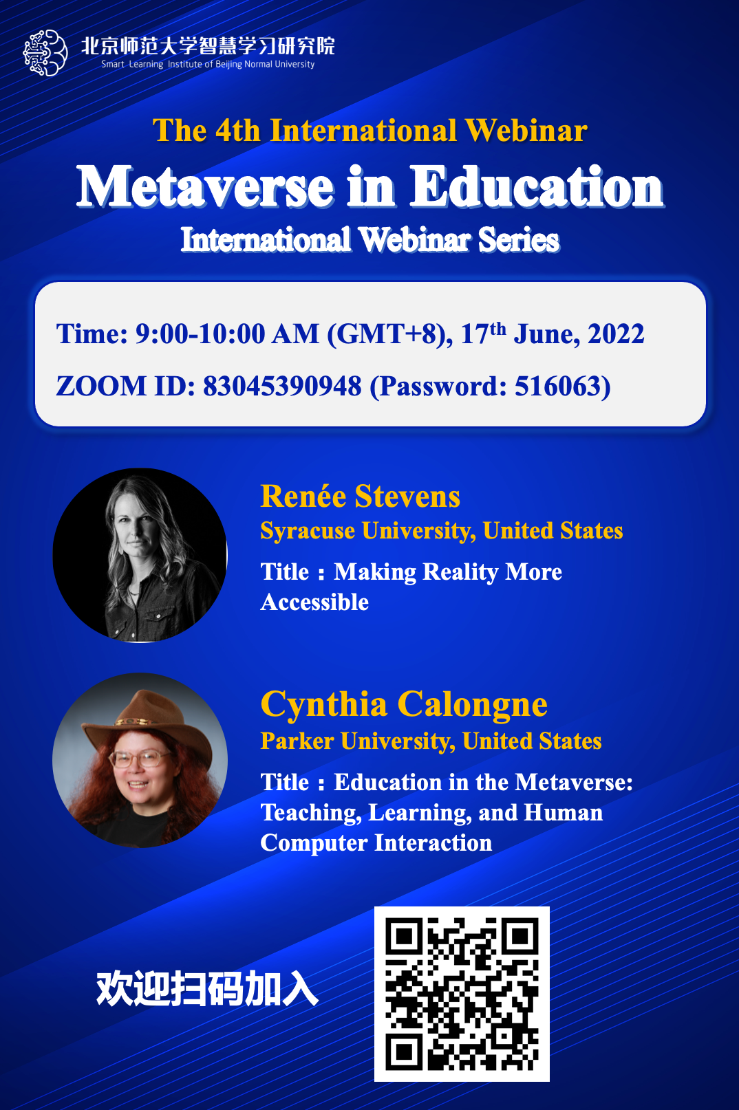 北京师范大学智慧学习研究院将于6月17日(本周五)举办元宇宙与教育系列国际研讨会(第四场)——Metaverse in Education International Webinar Series 4,邀请来自美国的两位专家进行分享,敬请各位同学和老师参加。