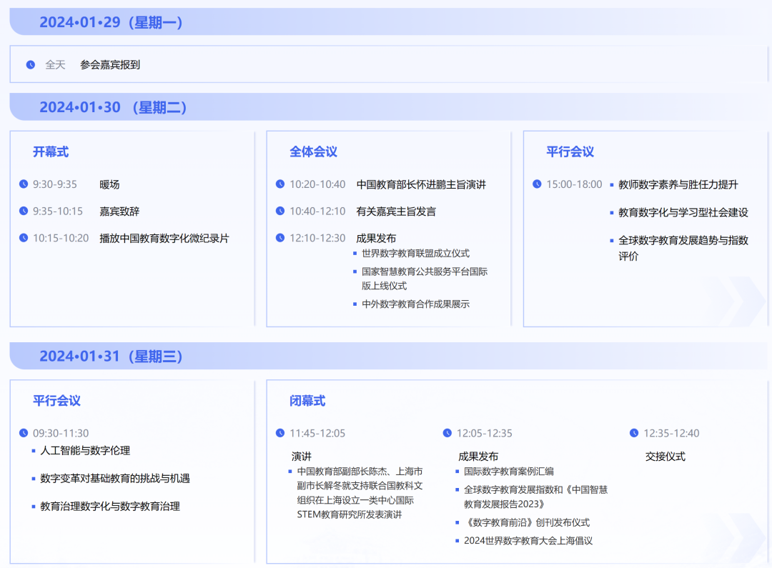 中华人民共和国教育部和中国联合国教科文组织全国委员会、上海市人民政府将于2024年1月29日至31日共同在上海举办2024世界数字教育大会。