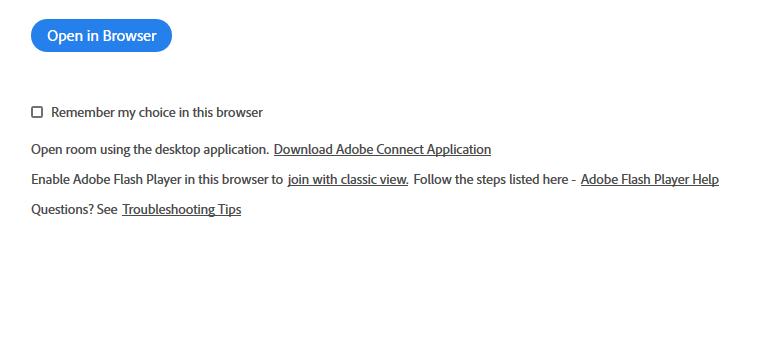 2. 选择下载Adobe Connect或允许浏览器运行Flash