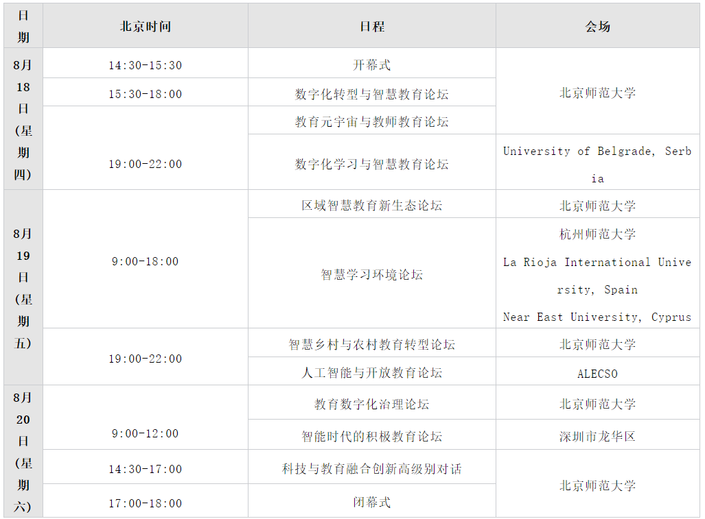 为推动我国教育数字转型与智能升级,加强国际传播,经教育部批准,由北京师范大学与联合国教科文组织教育信息技术研究所联合主办的“2022全球智慧教育大会”将于8月18-20日通过线上线下融合方式召开。本届会议以“智能技术与教育数字化转型”为主题,将围绕多项议题组织论坛和高级别对话。