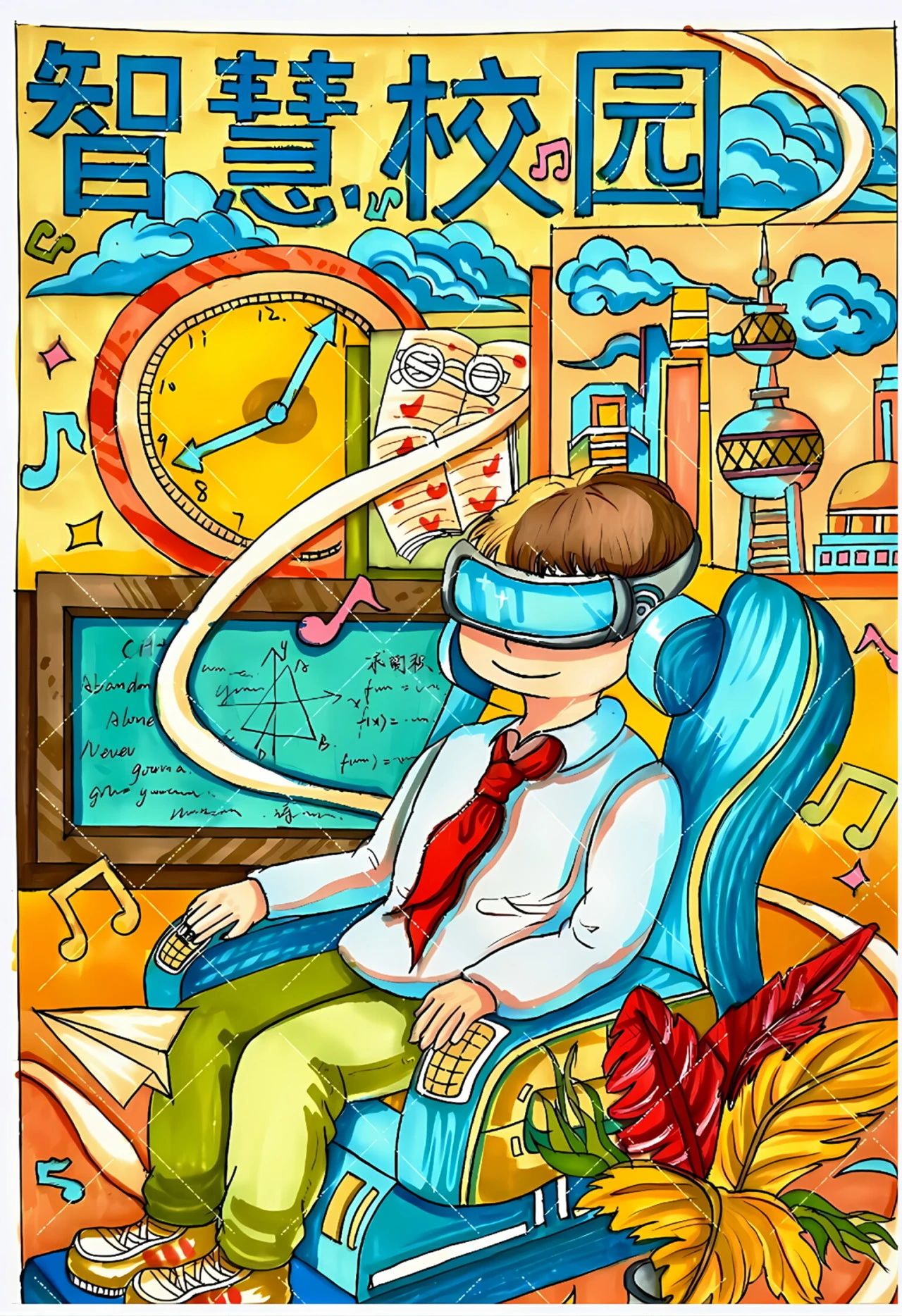 作品创思:海报以未来教育世界为蓝本,生动展现科技赋能教育的魅力。学生沉浸其中,不仅眼界大开,更在无形中提升了学习力与见识,展现了科技促进成长的无限可能。