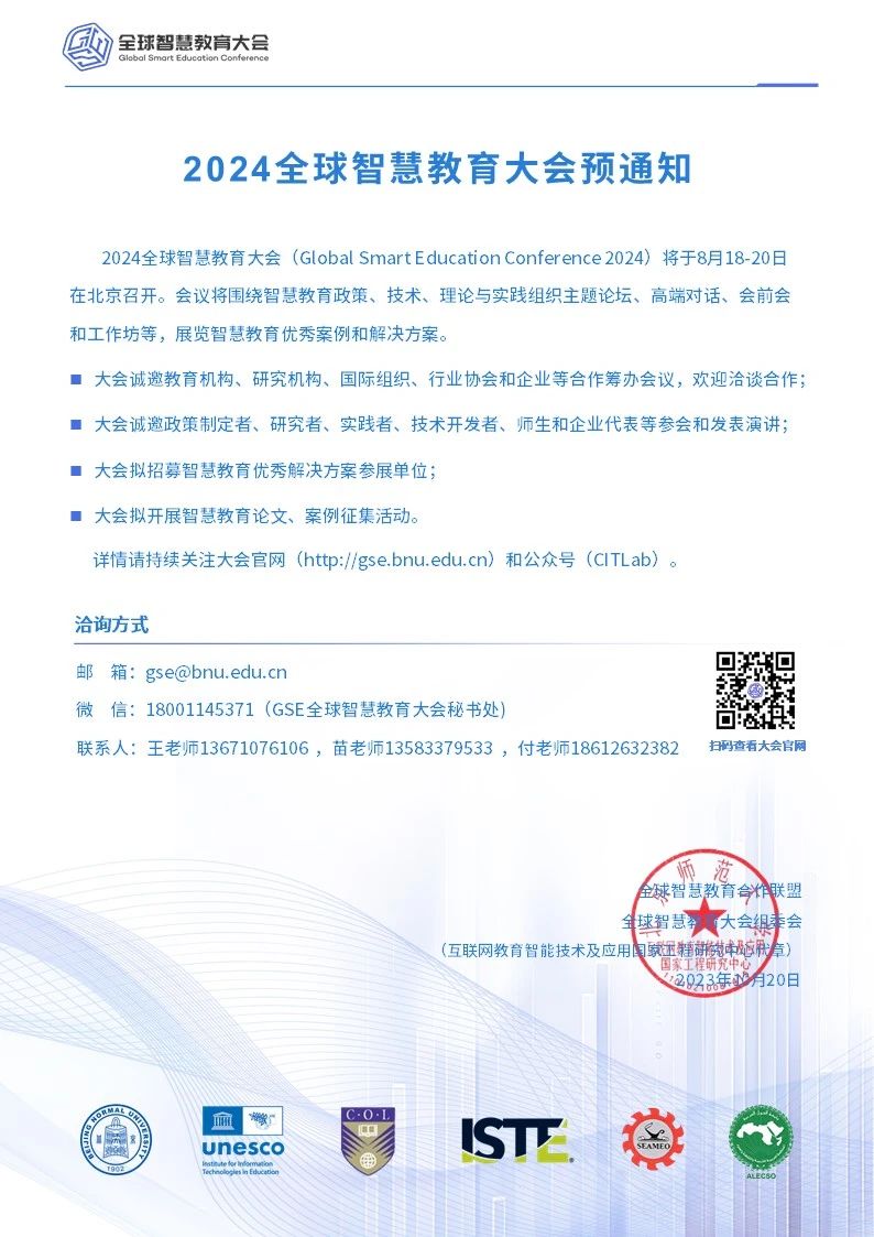 微信:18001145371(GSE全球智慧教育大会秘书处)