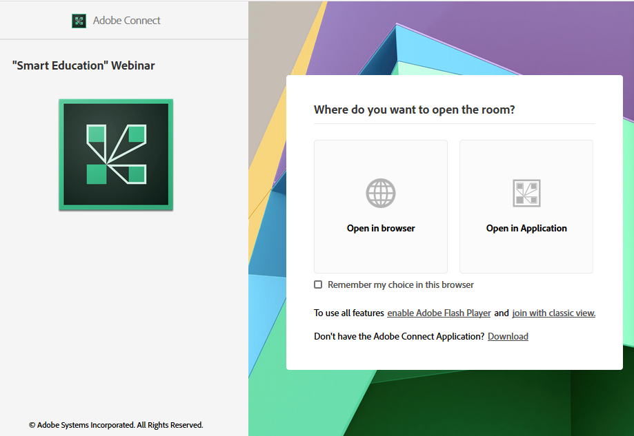 2. 选择下载Adobe Connect或允许浏览器运行Flash