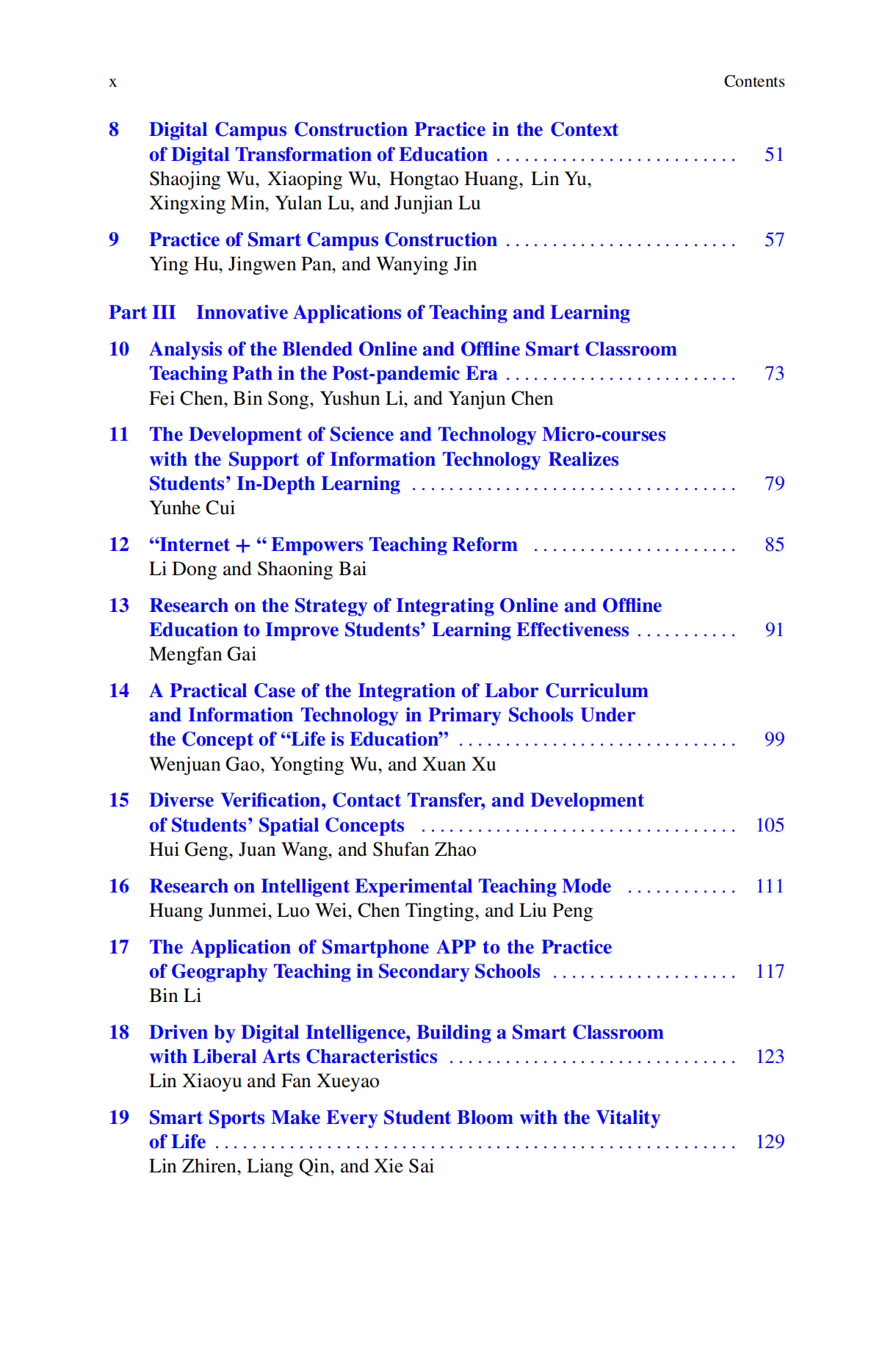 This book focuses on best practices in smart education in Chinese schools. It showcases the achievements of Chinese schools in smart education since the comprehensive implementation of the educational digital transformation in China. These selected case studies explore smart education practices from various perspectives, such as innovative practices in teaching and learning, the construction and application of digital platforms, resources, and tools, smart educational and teaching evaluation, and the construction of smart campuses. It enriches understanding of the current status of smart education in Chinese schools and is a useful reference for researchers, teachers, policymakers, and school administrators across the globe.
