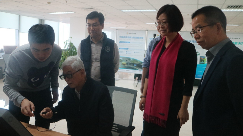 会后,顾先生在黄院长等人的陪同下,参观并体验了普米互动课桌、VR互动体验设备、101智慧教室、Zspace增强现实学习设备和资源等。