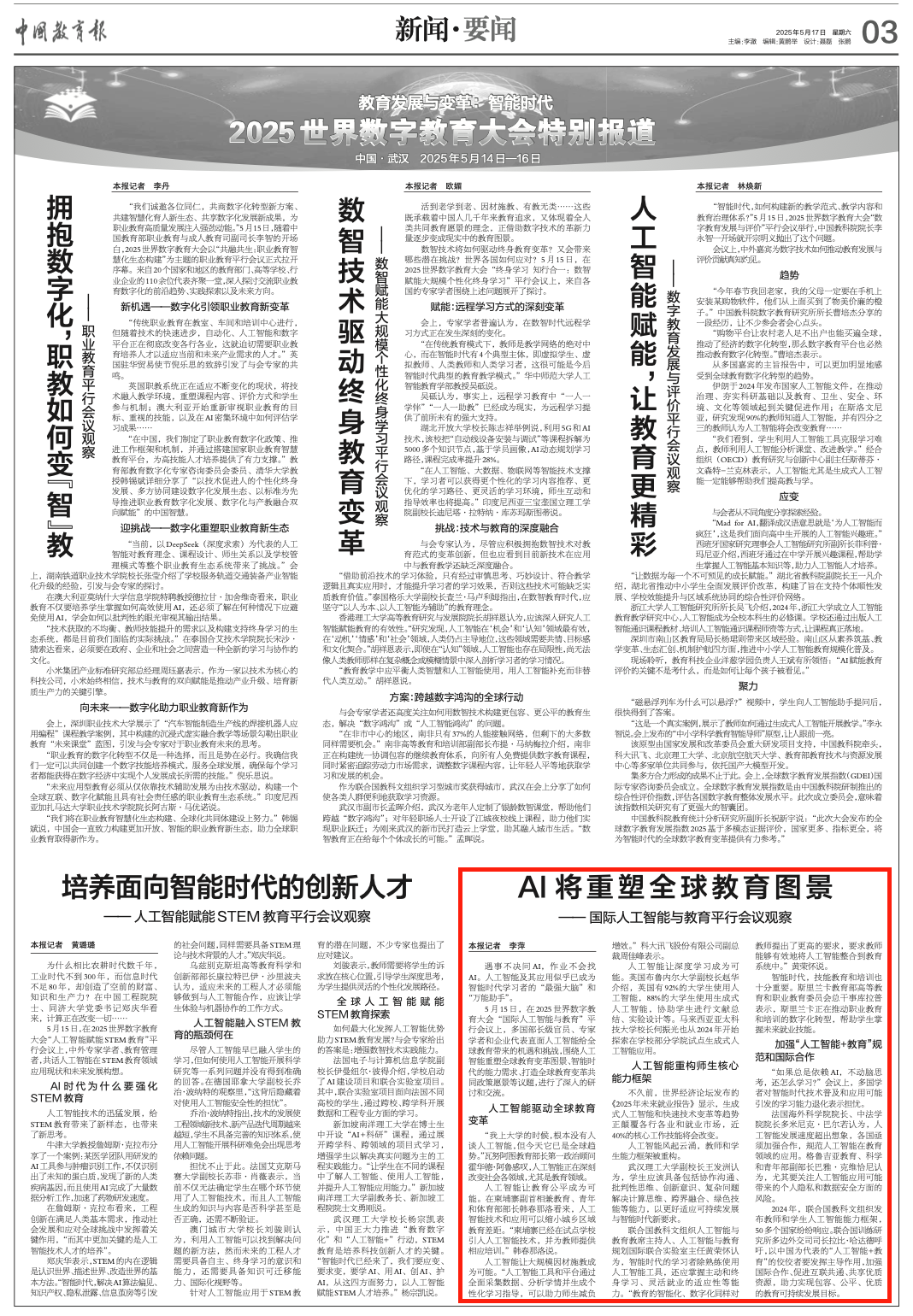 5月15日,在2025世界数字教育大会“国际人工智能与教育”平行会议上,多国部长级官员、专家学者和企业代表直面人工智能给全球教育带来的机遇和挑战,围绕人工智能重塑全球教育变革图景、智能时代的能力需求、打造全球教育变革共同政策愿景等议题,进行了深入的研讨和交流。