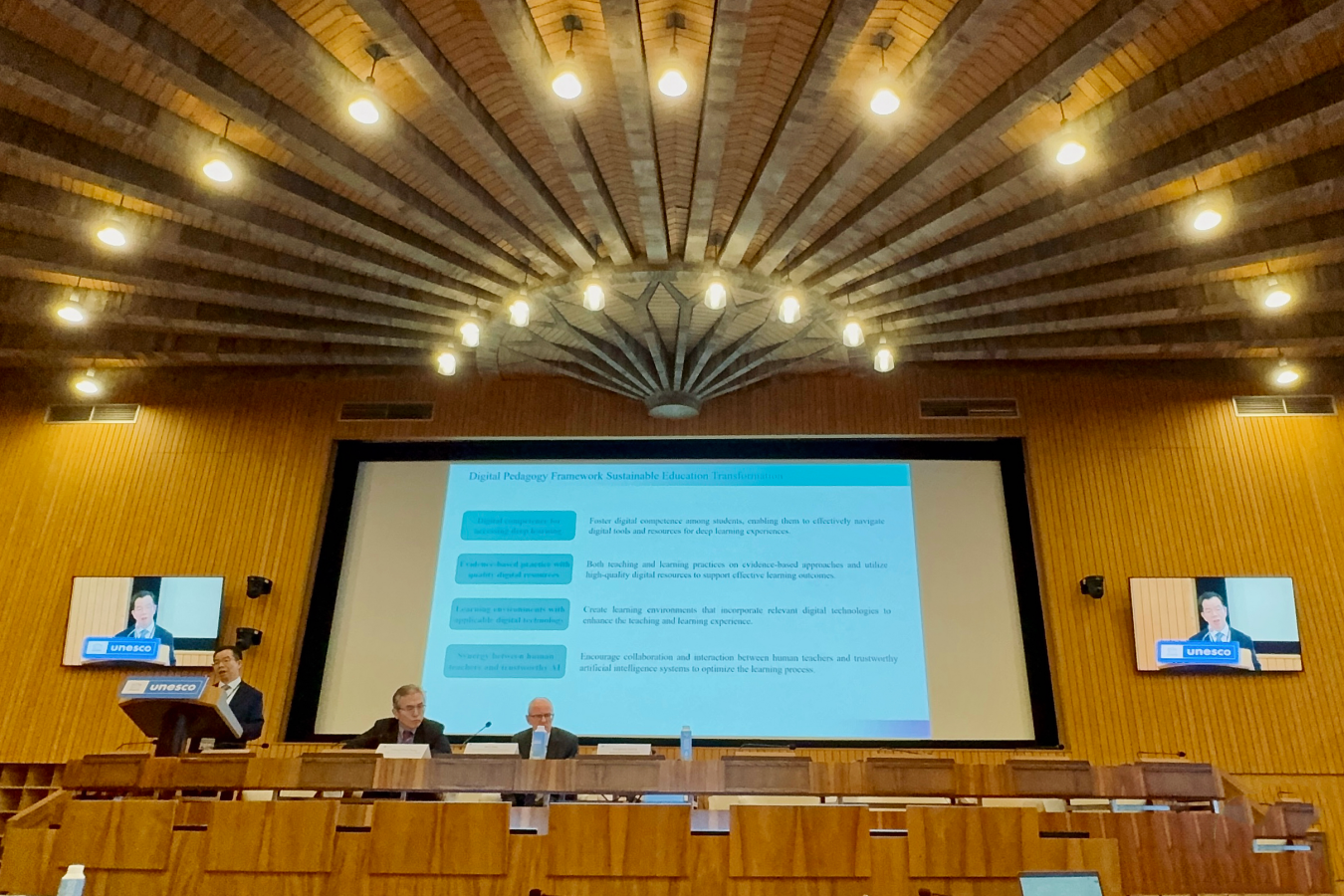 12月2日至3日,联合国教科文组织全球学习科学联盟年会在联合国教科文巴黎总部召开,北京师范大学智慧学习研究院联席院长、联合国教科文组织人工智能与教育教席黄荣怀教授,中法教育创新中心主任、国际交流与合作处副处长刘敏副教授受邀参加会议。