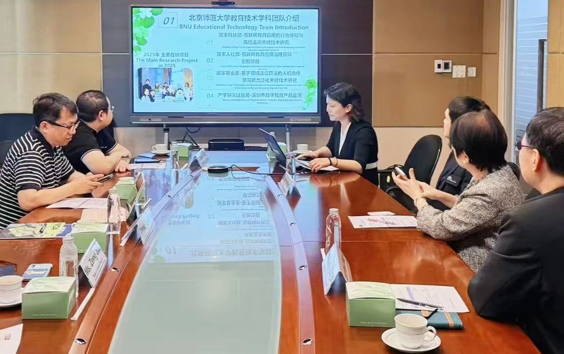 北京师范大学国家工程中心副主任、教育学部童莉莉教授介绍了学校一流学科分布情况,国家/省部级科研平台在服务教育强国建设中的工作安排,学校教育学科作为中国教育创新的重要策源地、教育决策的思想库、国际教育交流重要基地的设计结构。呈现了双方在教育数字化治理政策共研、人才联合培养方面已有的基础,并就新的交流周期内对 AI 校园应用场景建设、运维监测和治理建议输出进行了学术交流。