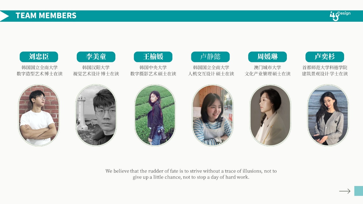 我们是A&DT小组,团队成员来自国内外不同高校和专业。此次参赛经历,不仅是对我们的协作能力和学识的锻炼,更是一场跨文化的交流盛宴。虽然我们有着不同的文化和教育背景,但共同的目标使我们团结一心。在比赛项目推进过程中,我们相互借鉴、互相支持,每一位成员都倾尽全力。在此也要特别感谢北京师范大学为我们提供这样宝贵的交流和展示的平台。我们坚信:不抱幻想、不失机会、不止步前行,才能真正驾驭命运之舵。期待未来与团队再次共同奋斗。