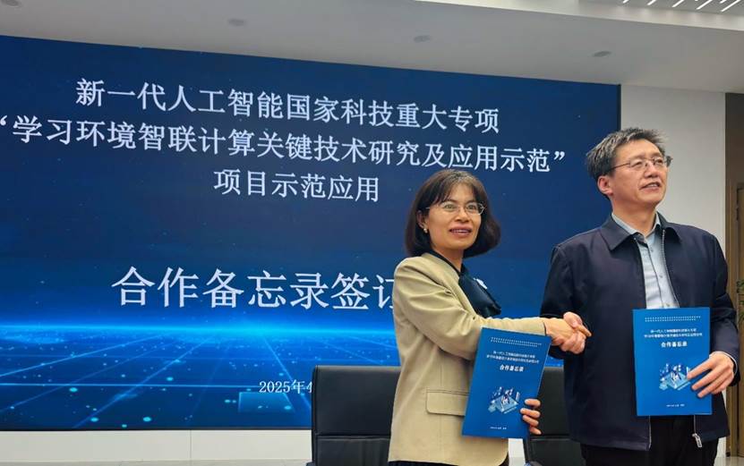 会上,项目组与晋中市教育局举行了签约仪式与授牌仪式。人工智能重大专项“学习环境智联计算关键技术研究及应用示范”项目负责人李艳燕教授与晋中市教育局副局长贺利捷共同签署了合作备忘录,并为晋中市授牌,正式将晋中市列为“学习环境智联计算关键技术研究及应用示范”项目示范区。