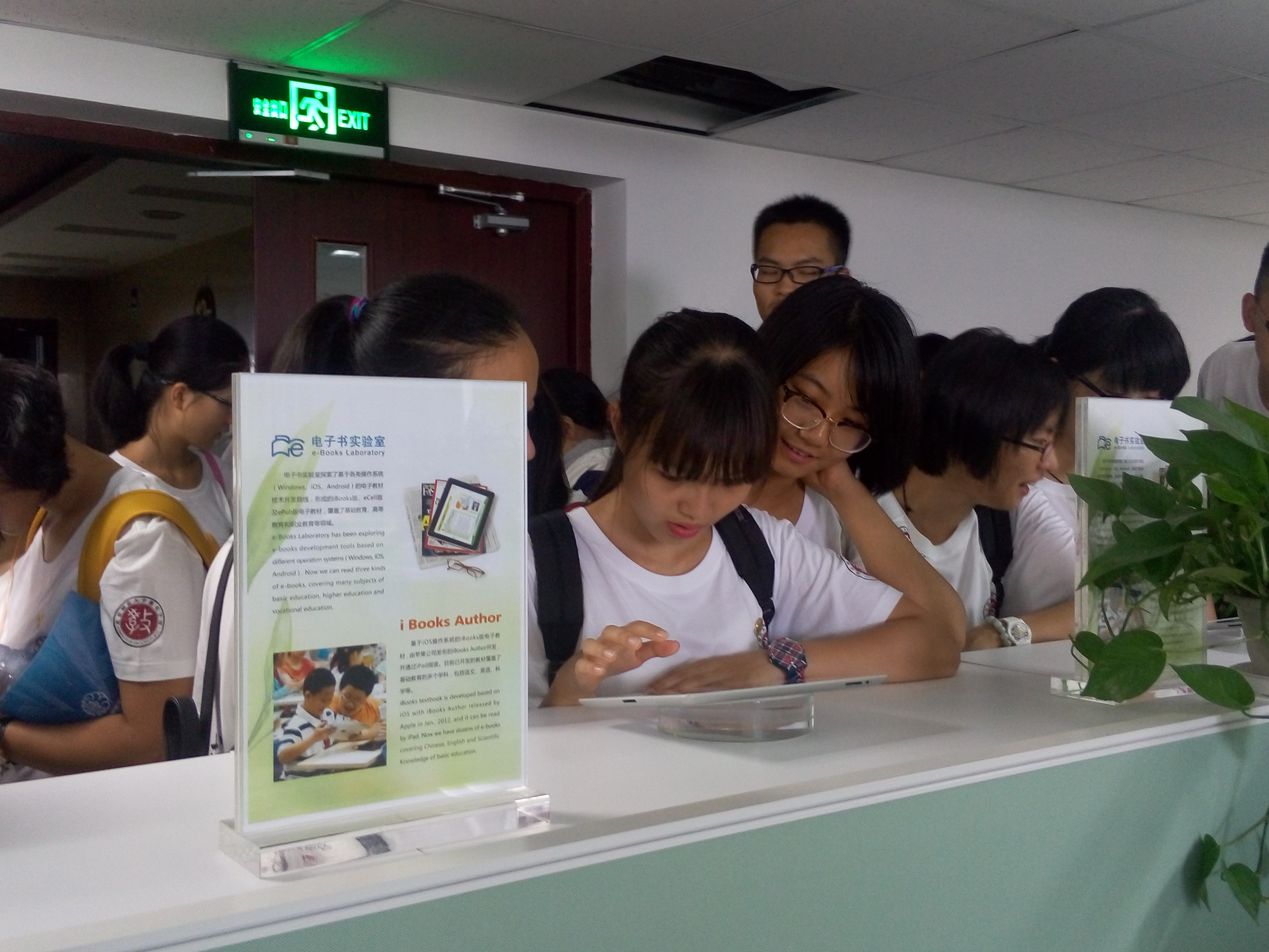 黄院长对本科新生的到来表示欢迎,并对教育技术学科进行简单介绍,希望在日后的本科课堂《教育技术学导论》中与同学们有更多的分享。国际合作部张定文主任对智慧学习研究院的由来、发展以及新生关心的产品做了简要介绍,张进宝副教授和田涛老师分别向新生展示了3D打印实验室和电子书实验室的产品,引起了新生的浓厚兴趣。相信参观研究院可以帮助本科新生从不同视角理解教育技术学科,未来研究院也会逐步成为智慧教育教学的示范基地。
