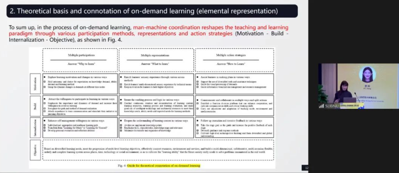 香港大学教育学院副院长Nancy Law作题为《Current conceptions of on-demand learning cannot meet future education needs》的特邀报告。她首先表达了对按需学习的理解,提出学习需要目标和路径的规划。其次,她讨论了为面向未来的学习而设计的重要性,强调学习者应有机会在团队中解决实际问题,培养社会情感弹性,以及在社会与技术交互的生态体系中体验虚实结合的学习和工作方式。最后,她提出了几点面向未来的学习的发展建议,包括建立明确的学习目标、有效的评价标准、关键的支持服务和合理的学习设计。