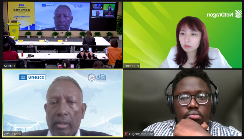 圆桌讨论环节邀请了联合国教科文组织人工智能与教育教席国际项目专家Awol Endris Adem,卡莫西友谊大学信息技术部门主任Eugene Masinde,网龙网络公司海外战略总监林凡和北京师范大学博士后费程共同探讨四个议题:如何将更多元化的教学方法融入未来的教育,体验式学习和项目式学习(PBL)方法如何应用于文科领域,脚手架理论和按需学习等理论如何与教育的未来发展相契合,以及未来实验室如何融合探究式学习理念。