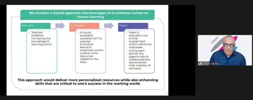 网龙网络公司副董事长梁念坚在题为"Future Education"的报告中表示,在当今时代,个性化学习已不再是遥不可及的梦想,技术进步为更多学生提供了实现个人价值的机会。教育重心应从单纯传授基础知识转向帮助学生培养关键的生活技能来应对日新月异的社会变革。为此,网龙公司设想了一种融合AI技术的混合教育模式,将教育者、AI聊天机器人和同伴协作相结合,以提升学习效果。这意味着学习环境不再局限于传统的教室,而是可以在任何地方进行。实体教室则可以转型为创新与协作的中心,为学习者提供更多元化的学习体验和成长空间。