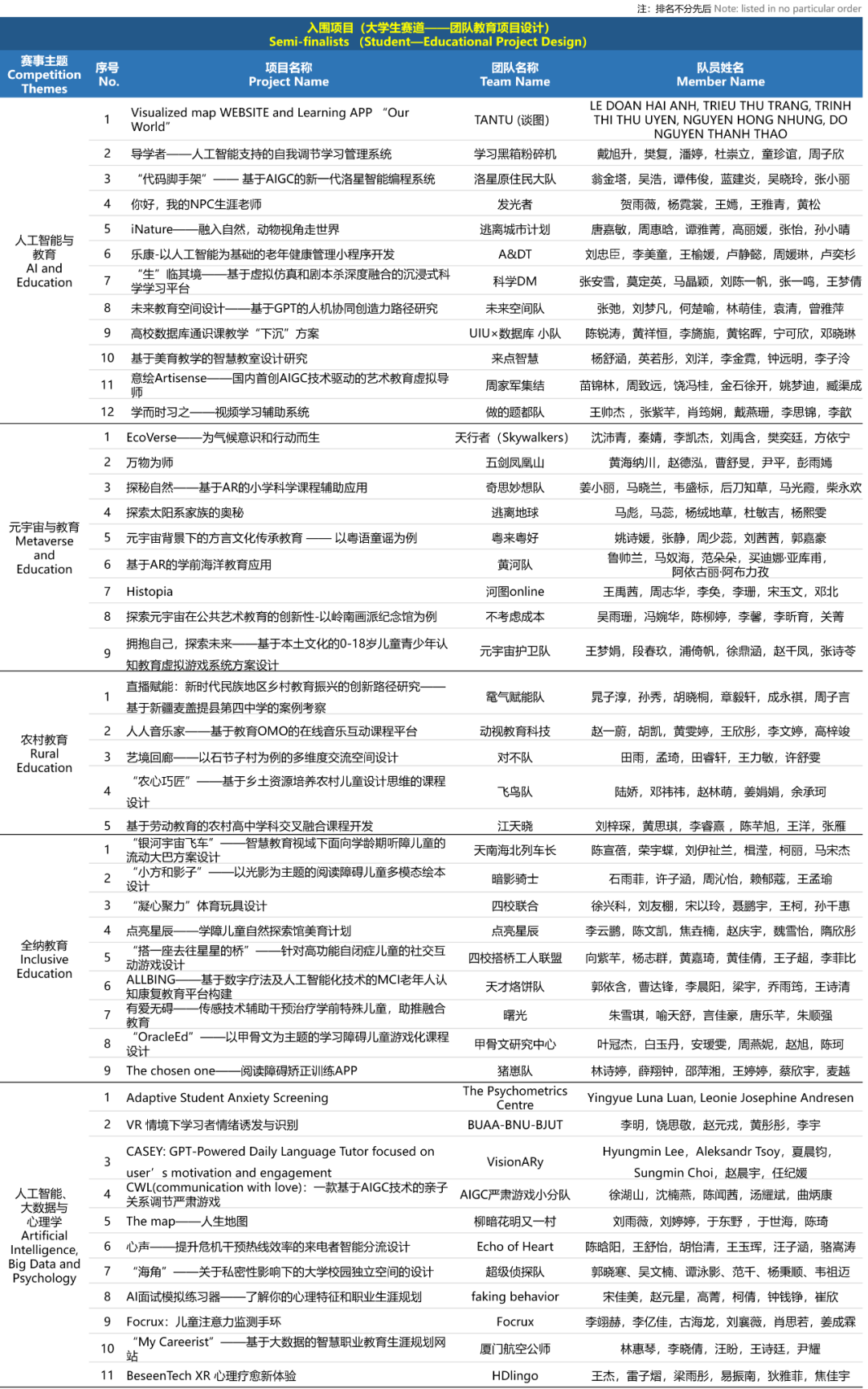 大学生赛道”团队教育项目设计”晋级项目名单: