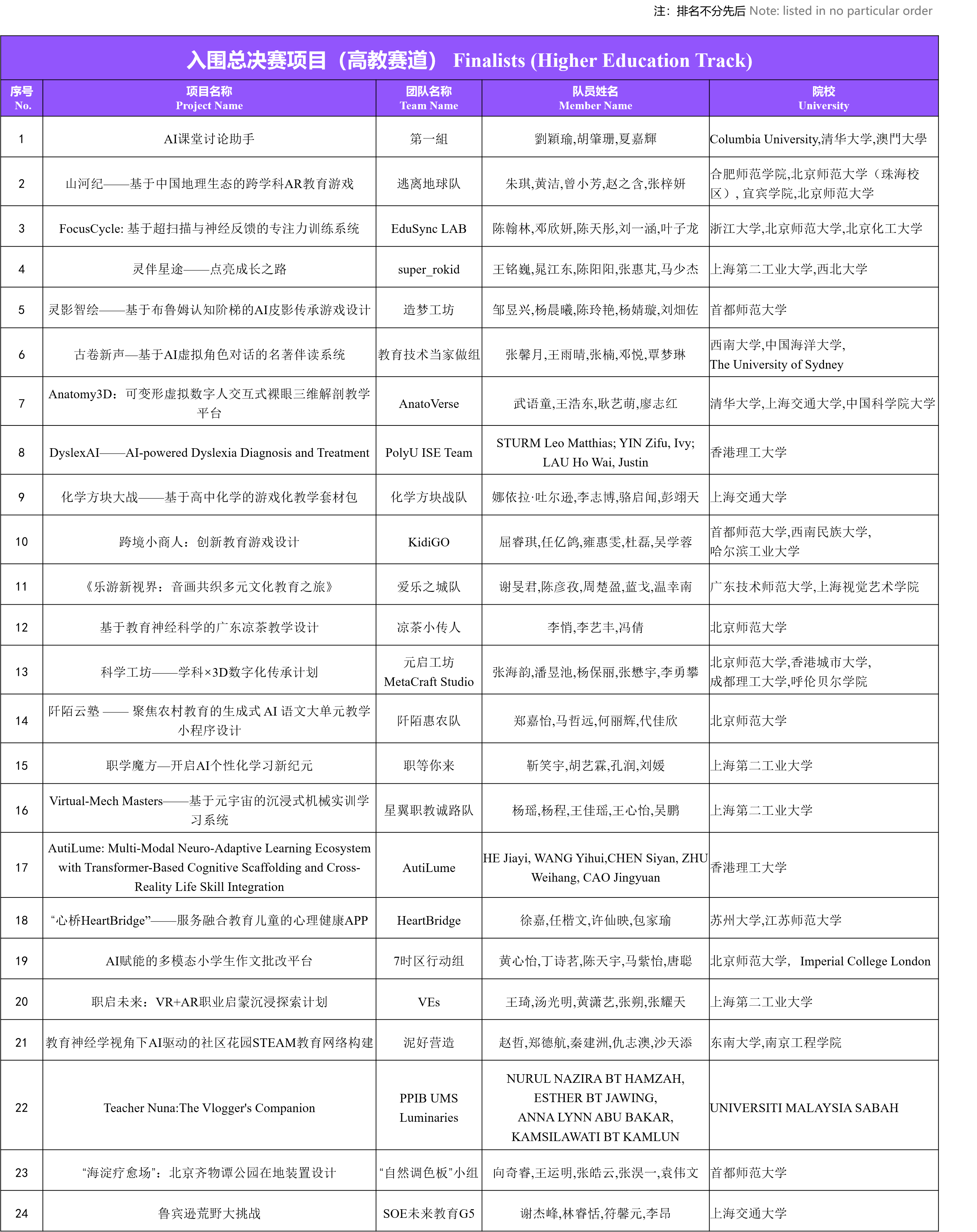 来自北京师范大学、清华大学、浙江大学、上海交通大学、香港理工大学、澳门大学、悉尼大学、帝国理工学院、马来西亚沙巴大学等50余所国内外高校的48支参赛团队参与预决赛项目汇报。各团队聚焦教育创新与技术融合,关注传统文化传承、特殊群体教育支持及跨学科实践等议题,注重通过AI算法、大数据、AR、VR等技术手段,打造个性化学习生态,构建多元文化教育体验。来自不同高校和企业的十位专家评委从问题意识、创新精神、科教融合、应用前景和呈现表达等维度出发,最终评选出24组项目入围总决赛(不包含分赛区结果)。