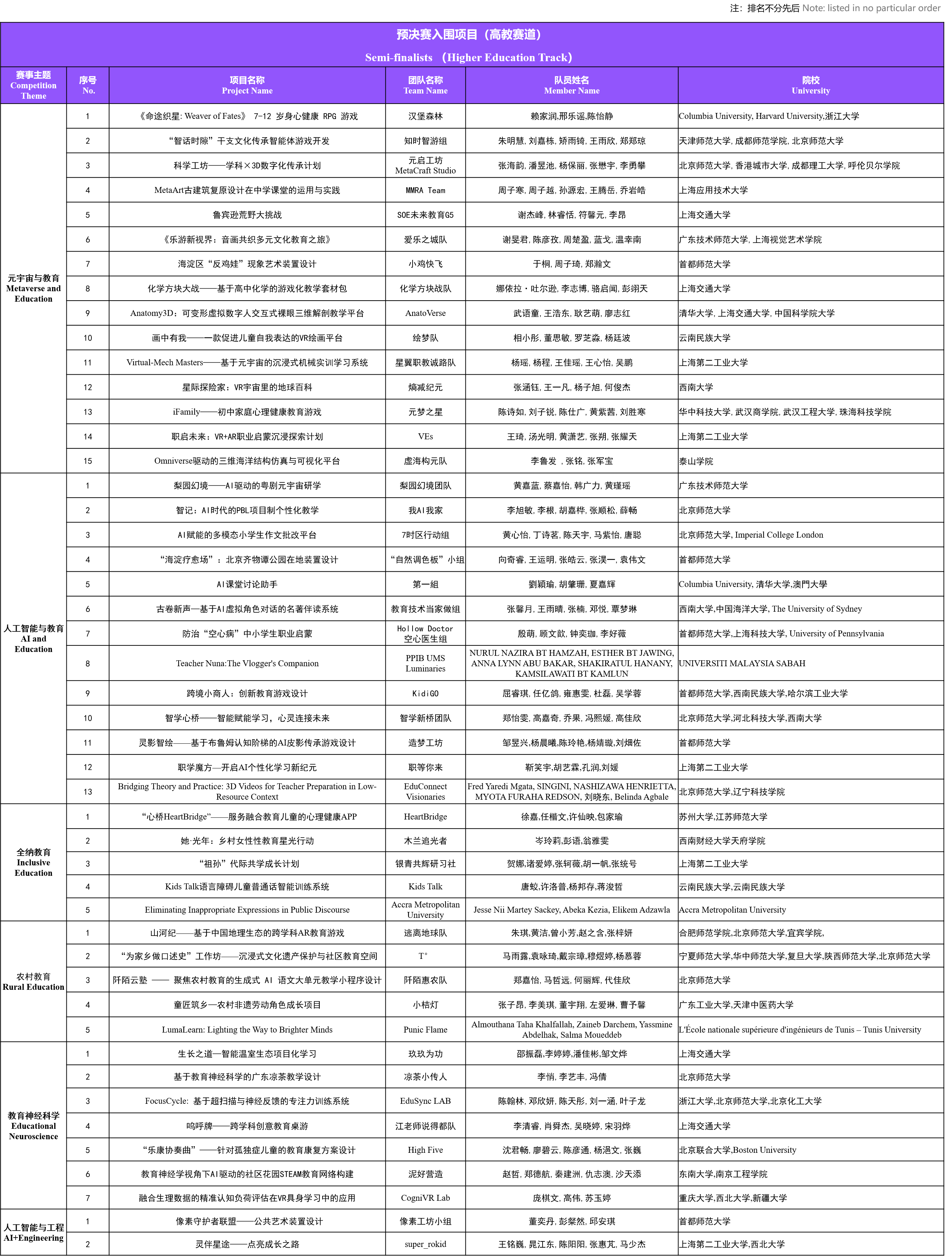 在高教赛道初赛阶段,各参赛团队紧扣赛事主题展开探索。作品聚焦于教育公平、个性化学习、文化传承、心理健康等关键议题,积极探索人工智能大模型、区块链、虚拟现实等前沿技术在教育中的应用。项目内容包含利用AI赋能特殊群体教育公平的解决方案,运用VR/AR打造沉浸式学习场景,基于神经科学与大数据开发专注力训练、认知负荷评估等智能工具,构建农村可持续教育生态网络,借助元宇宙技术活化非遗文化传承等多个领域,体现了技术与教育的深度融合,彰显了青年一代对教育使命的责任担当,为全球教育创新发展提供了丰富视角和可行路径。经过专家评审团的评选,共有47个项目作品成功晋级至预决赛阶段。