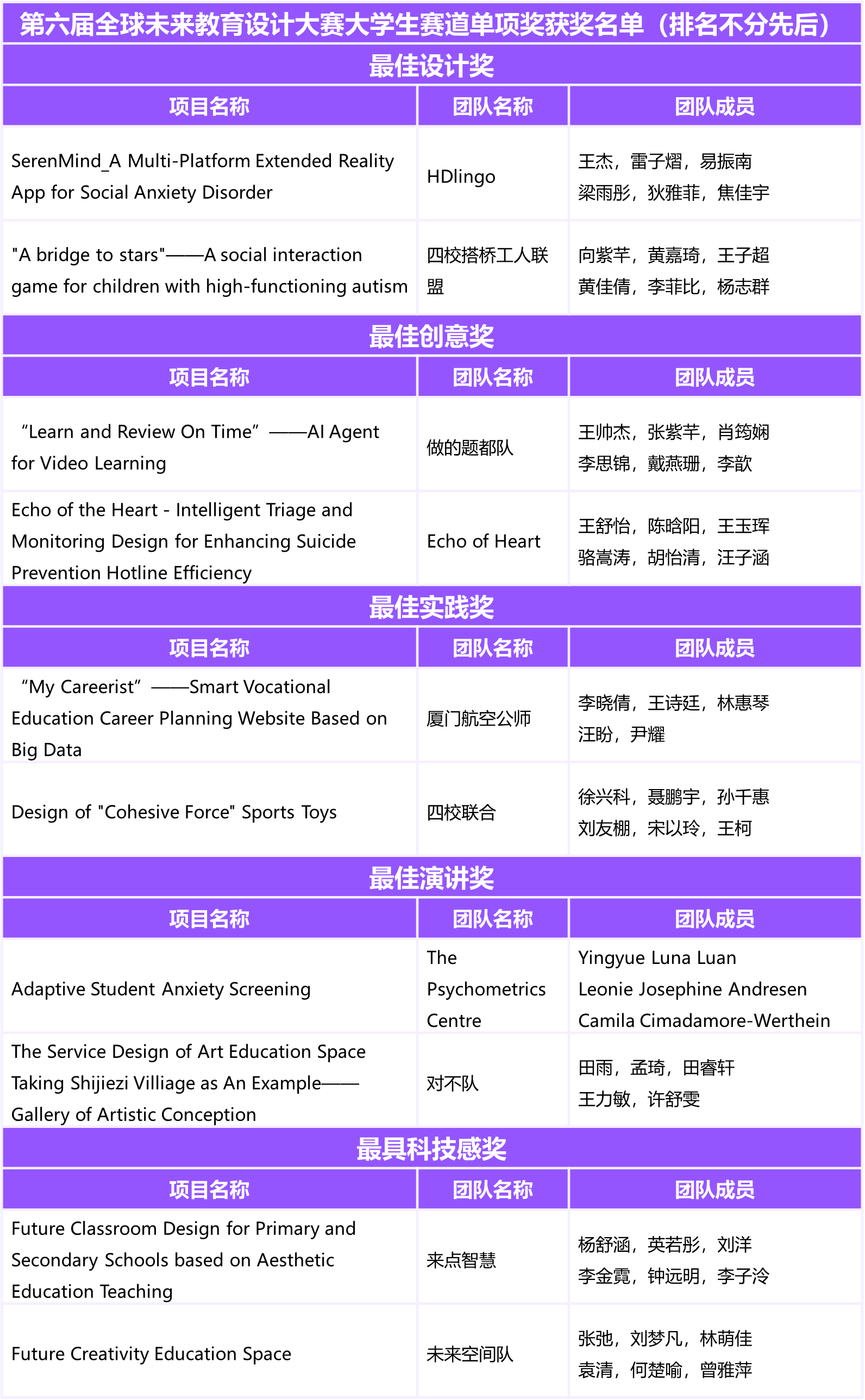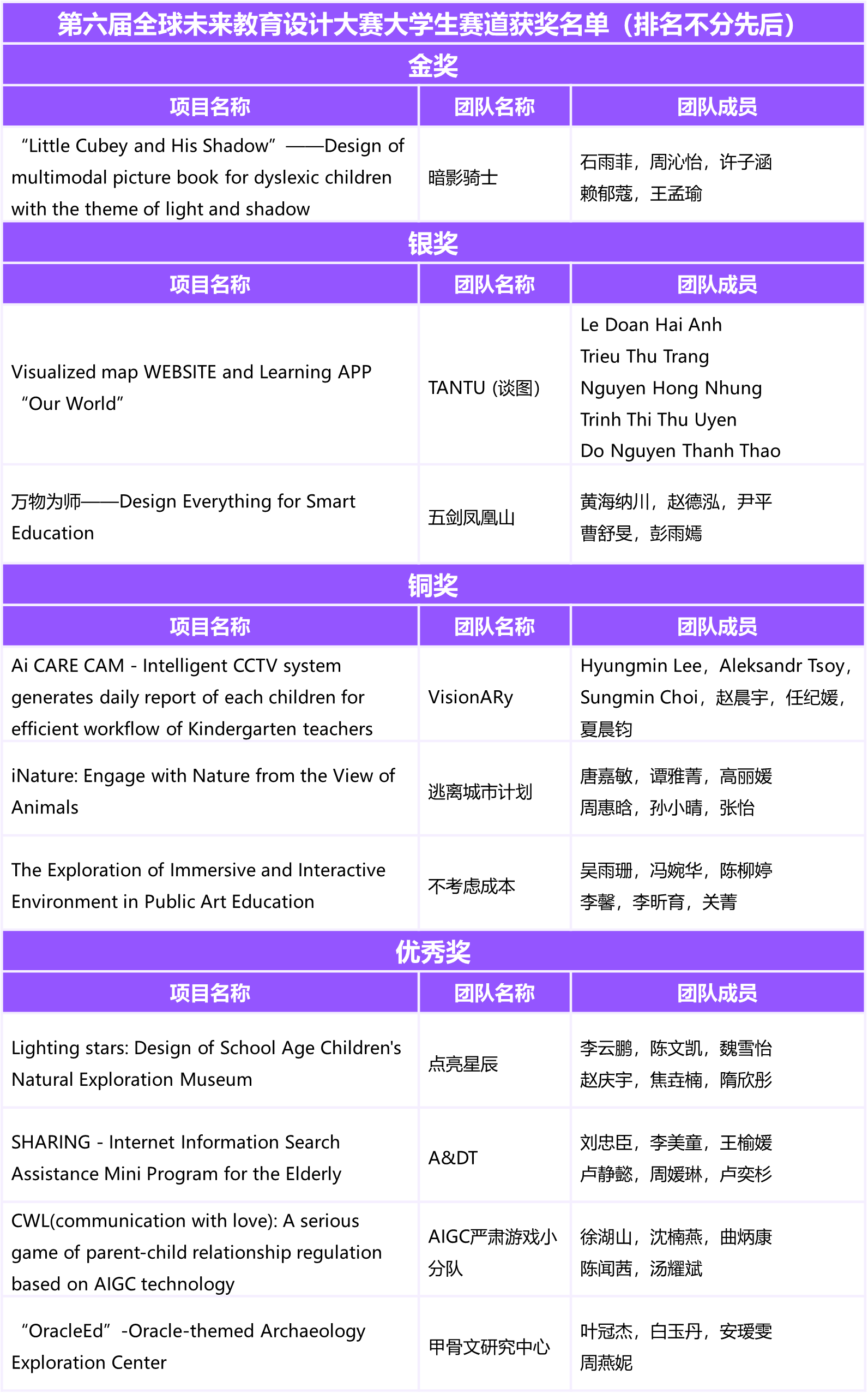 获奖名单公布