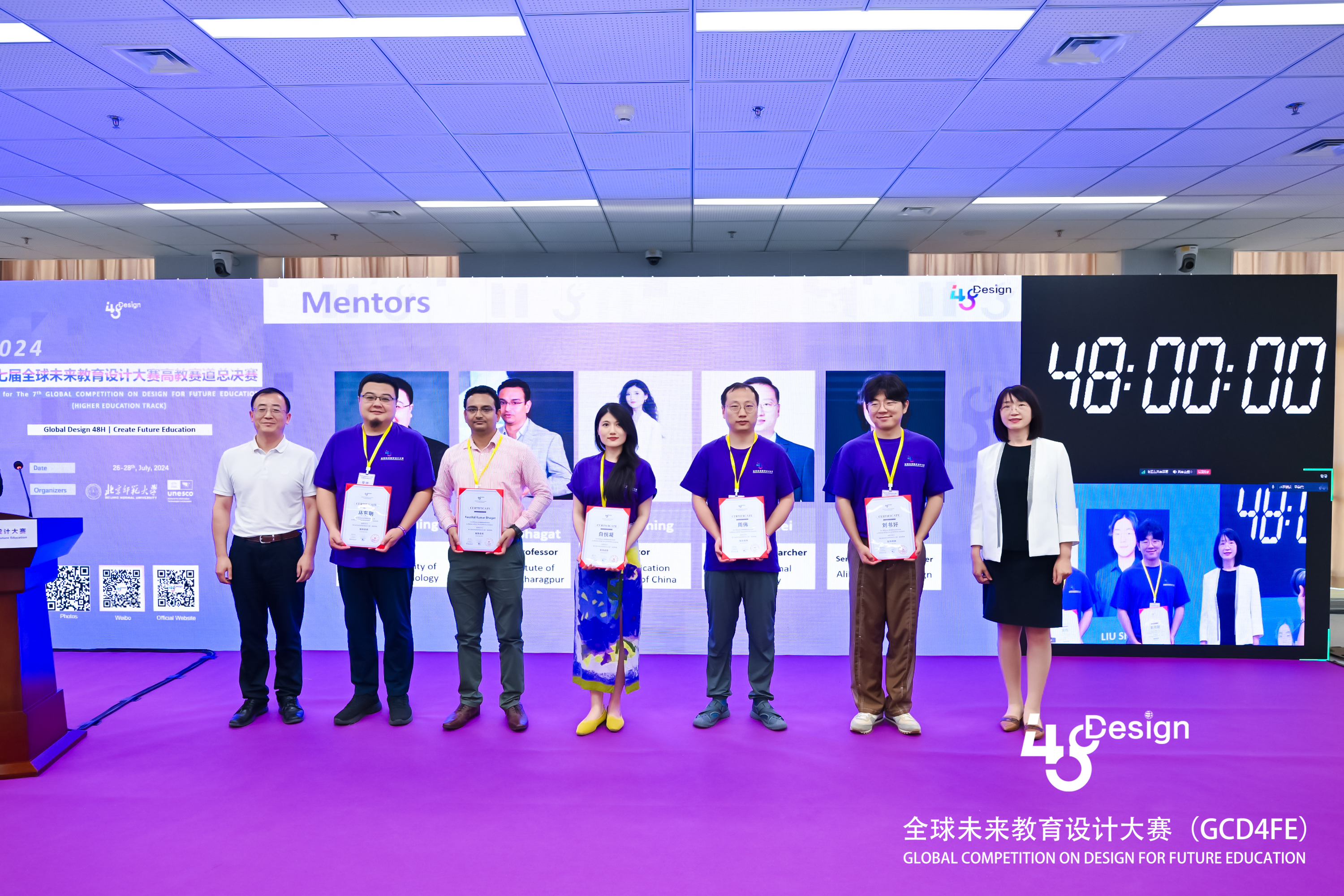 开幕式上,周作宇副校长、余博秘书长、刘立副书记、刘永强处长、黄荣怀院长、Asha Singh Kanwar副院长为大赛导师颁发聘书。大赛导师团将在48H团队教育项目设计中与参赛选手携手并进,共同开启一场融合智慧与灵感的未来教育创新之旅。