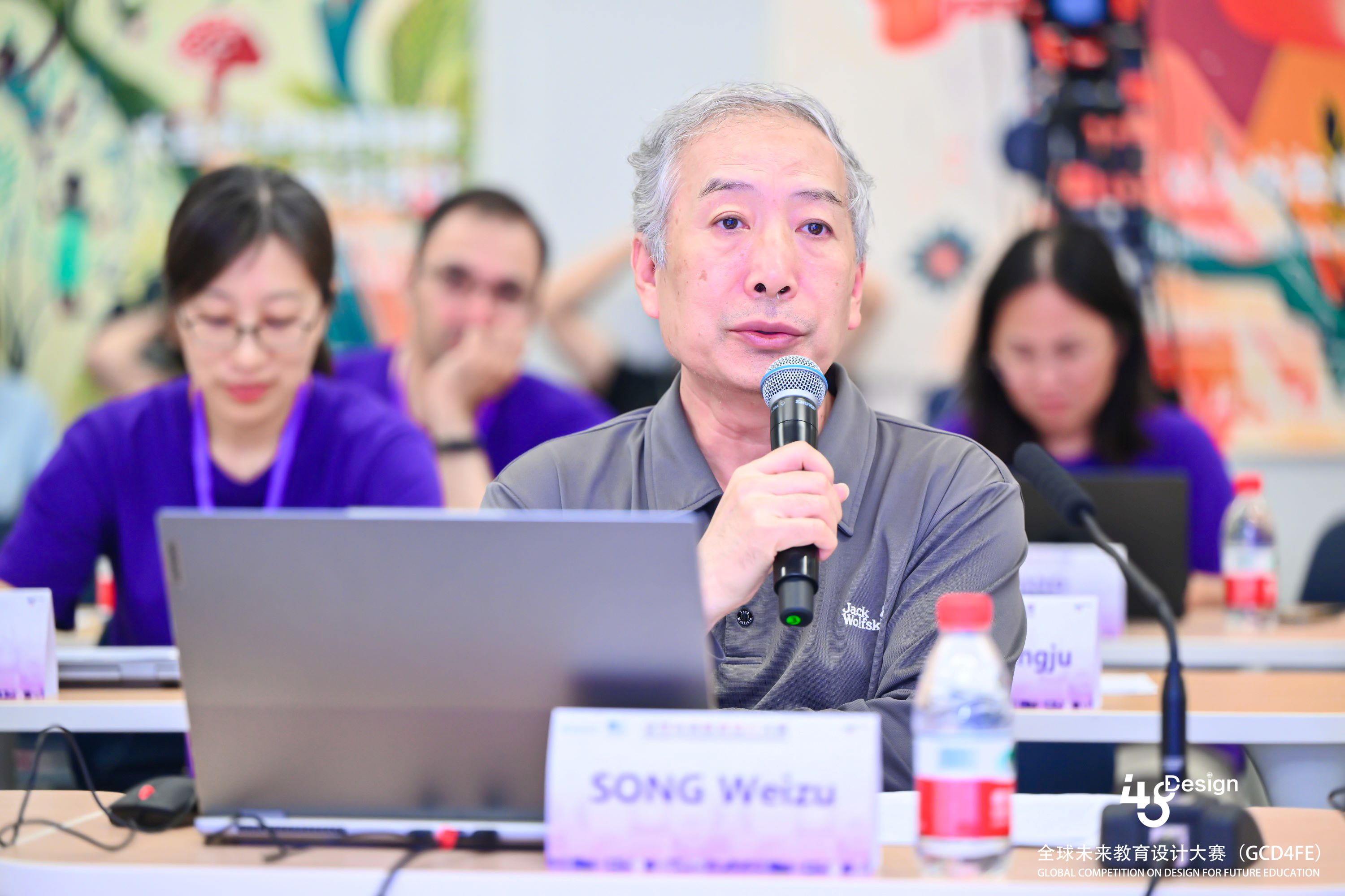 大赛尾声,陈光巨教授发表总结陈词。2025年年初赛阶段,共有来自35个国家和地区的200余所高校、超过1000名大学生积极参与,6月至7月分别在克罗地亚、韩国、菲律宾和马尔代夫开设四个海外分赛区。经过层层选拔,最终有来自中国、斯洛文尼亚、韩国、德国、马尔代夫、菲律宾等10个国家、30余所高校、27支队伍的117位选手汇聚于北京。总决赛期间,他欣喜地看到选手们在“共生”理念的引领下,展现出卓越的创造力与协作力,产出多项兼具创新与人文关怀的未来教育方案。比赛的结束是参赛者投身教育设计的新起点,他呼吁大家抓住变革机遇,共同开创更加公平、包容和可持续的教育未来。